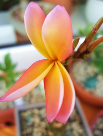 Barbara hat recht gehabt ,heute hab ich endlich meine allererste Plumeria-Blüte !!