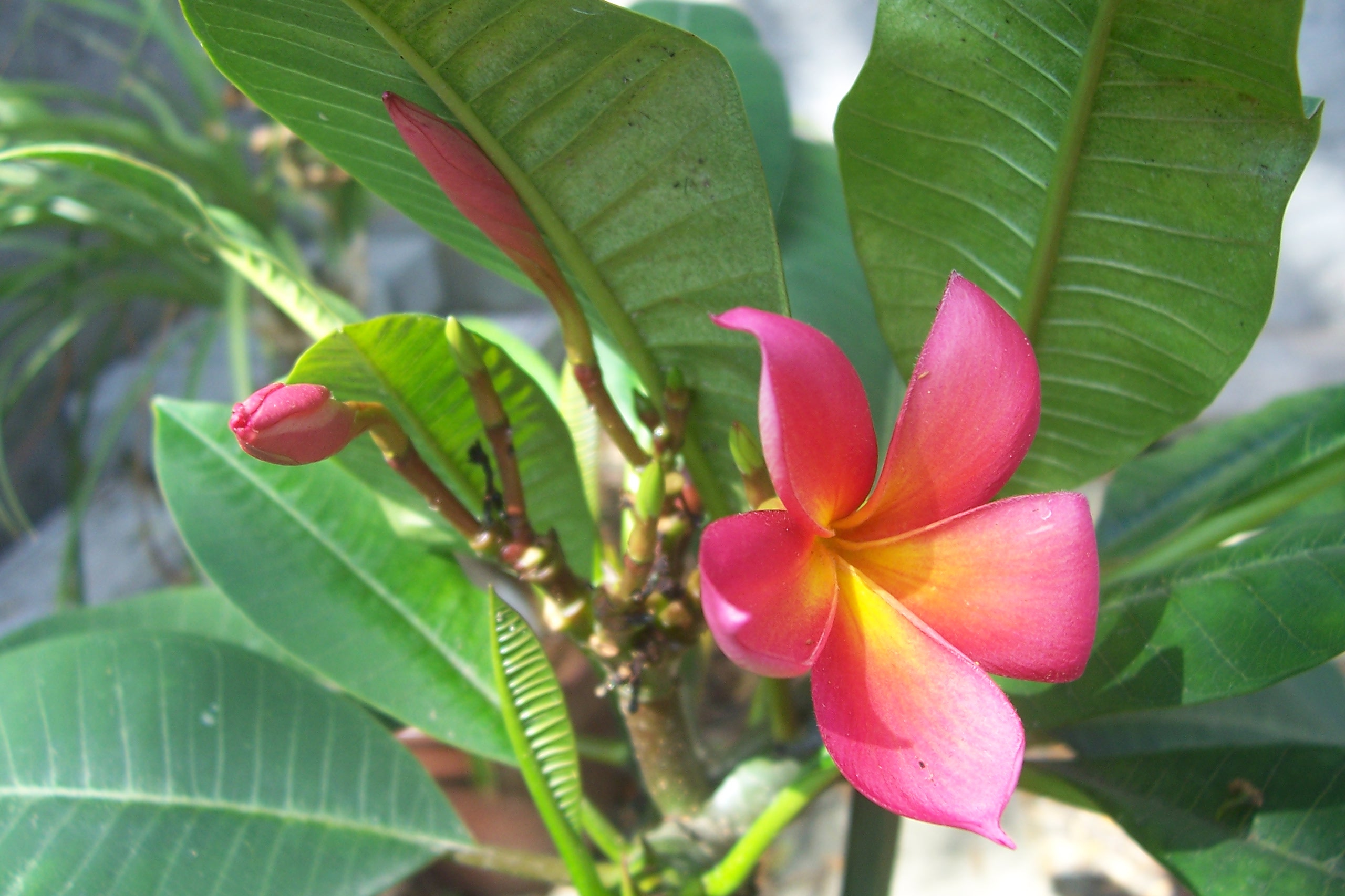Ich denke das die kleine Pflanze an dem Stecki keine Plumeria ist. Ich finde die Blätter und ihr Stamm sieht nich typisch nach einer Jungenplumeria aus. Aber knick doch mal ein Blatt um und wenn da ein weißer Milchsaft rauskommt ist es eine Plumi.