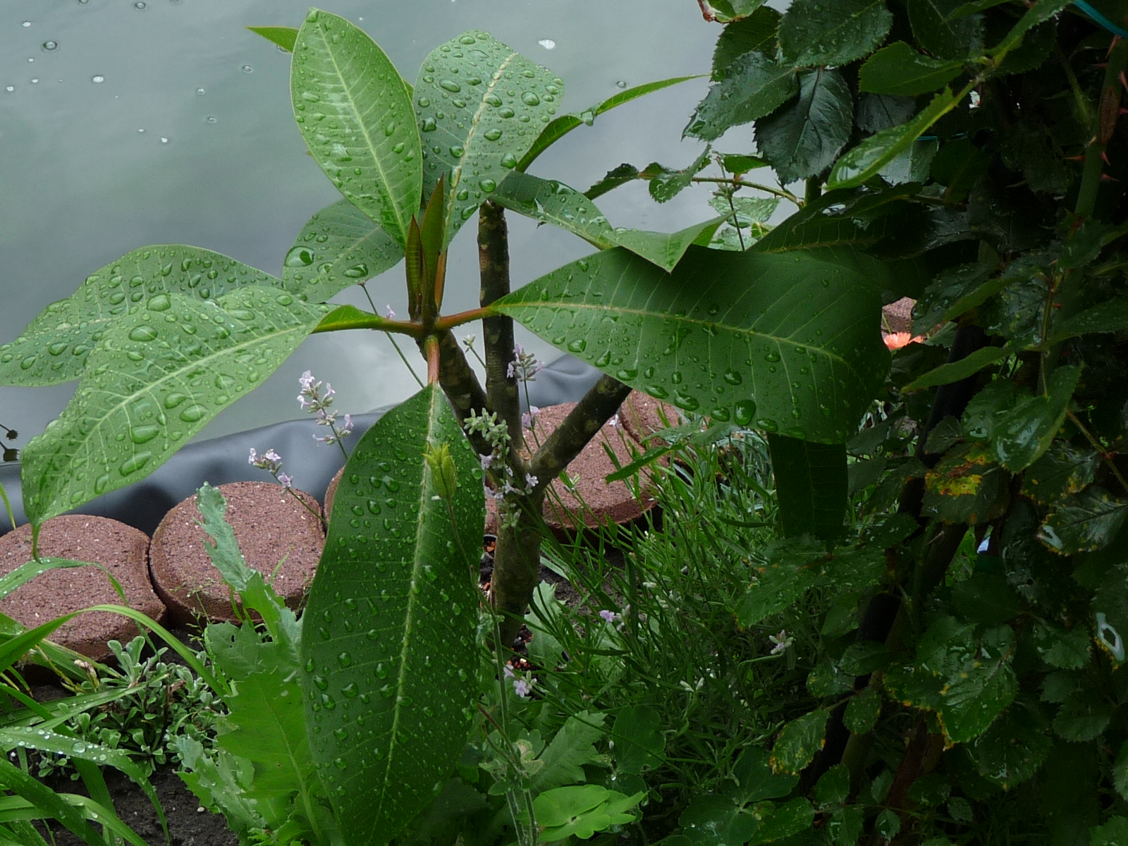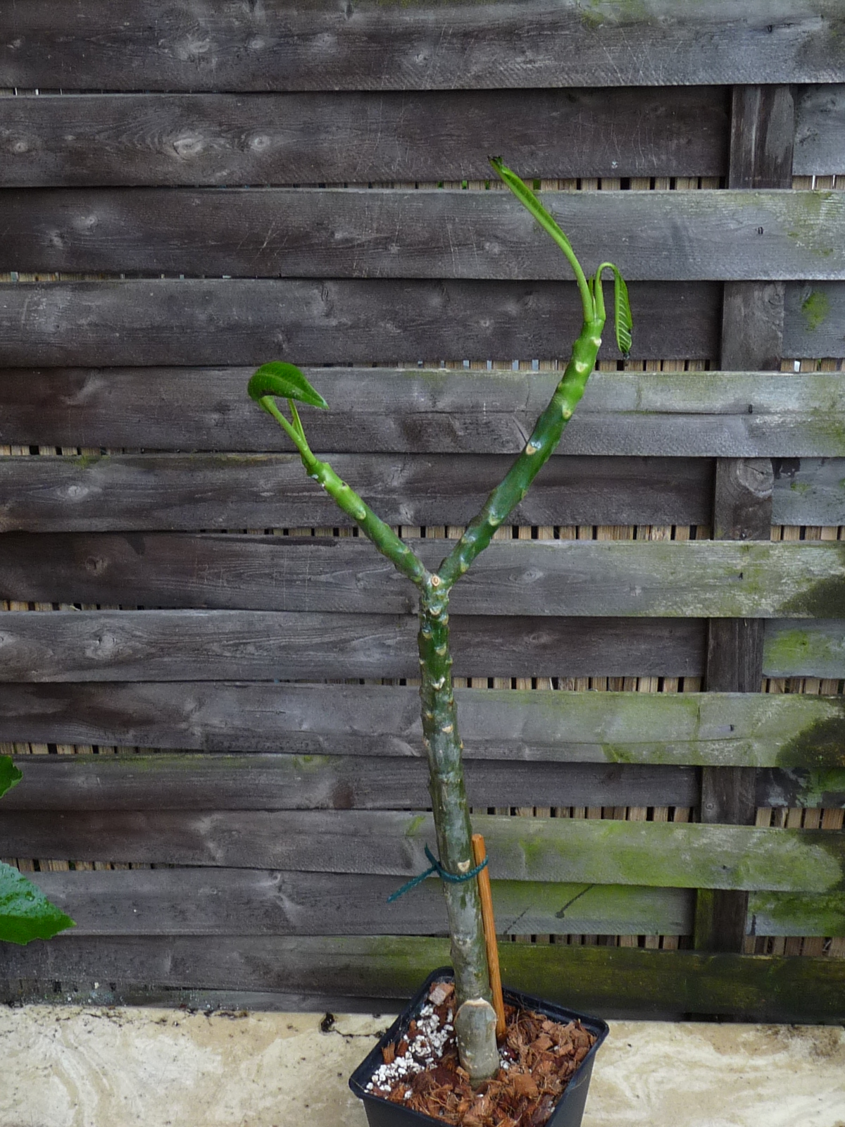 ich hab in meiner Nähe eine Gärtnerei gefunden, die Plumerias ziemlich günstig anbietet. Konnte natürlich nicht widerstehen und hab mir ein Prachtexemplar mit dickem Blütenstand zugelegt