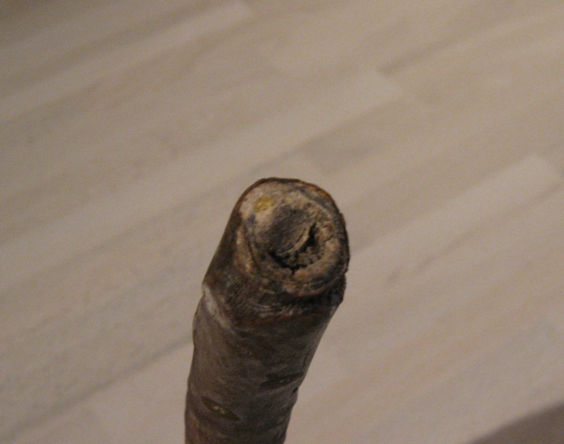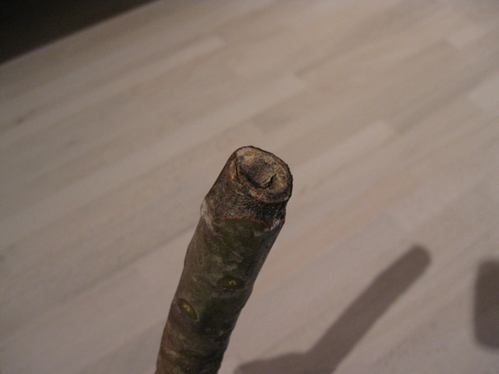 gerade hab ich noch was an dem einen steckling entdeckt.. das ende ist an einer seite ganz schwarz und hart, das innere fällt zusammen und ist weich, aber nicht gammlig... schwer zu beschreiben, hoffe man kanns auf dem bild erkennen. muss ich da was abschneiden?