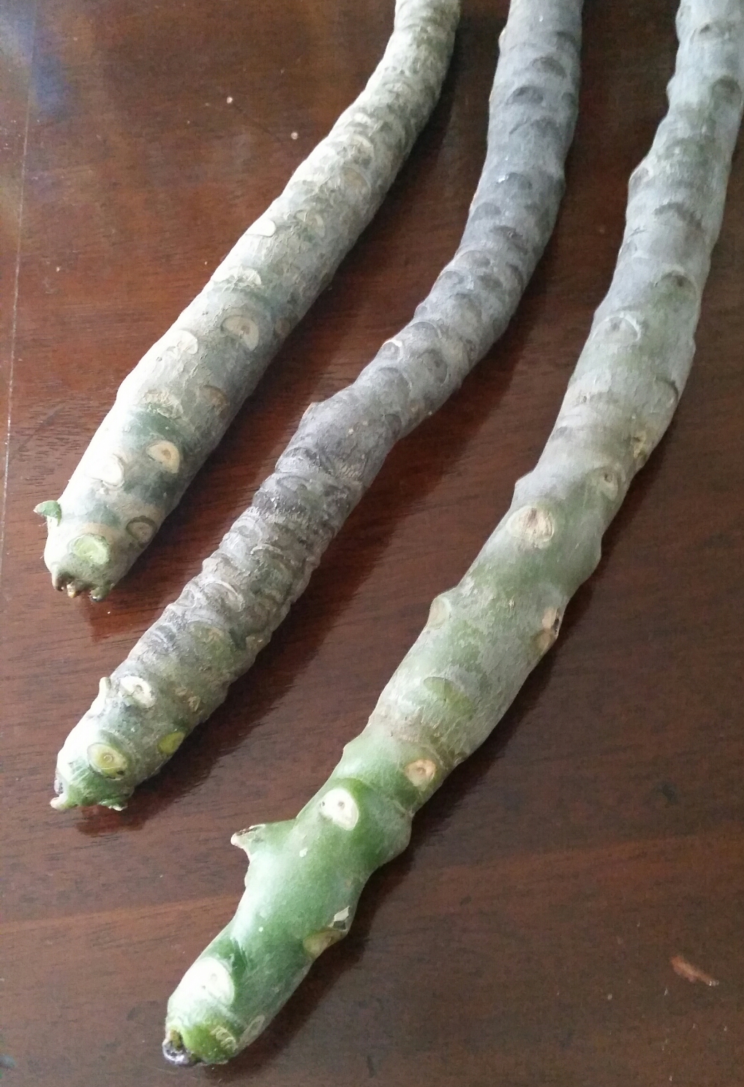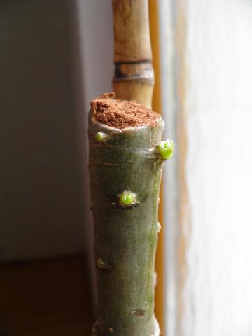 Schau mal, so schaut es aus, wenn eine abgeschnittene Plumi neu austreibt.