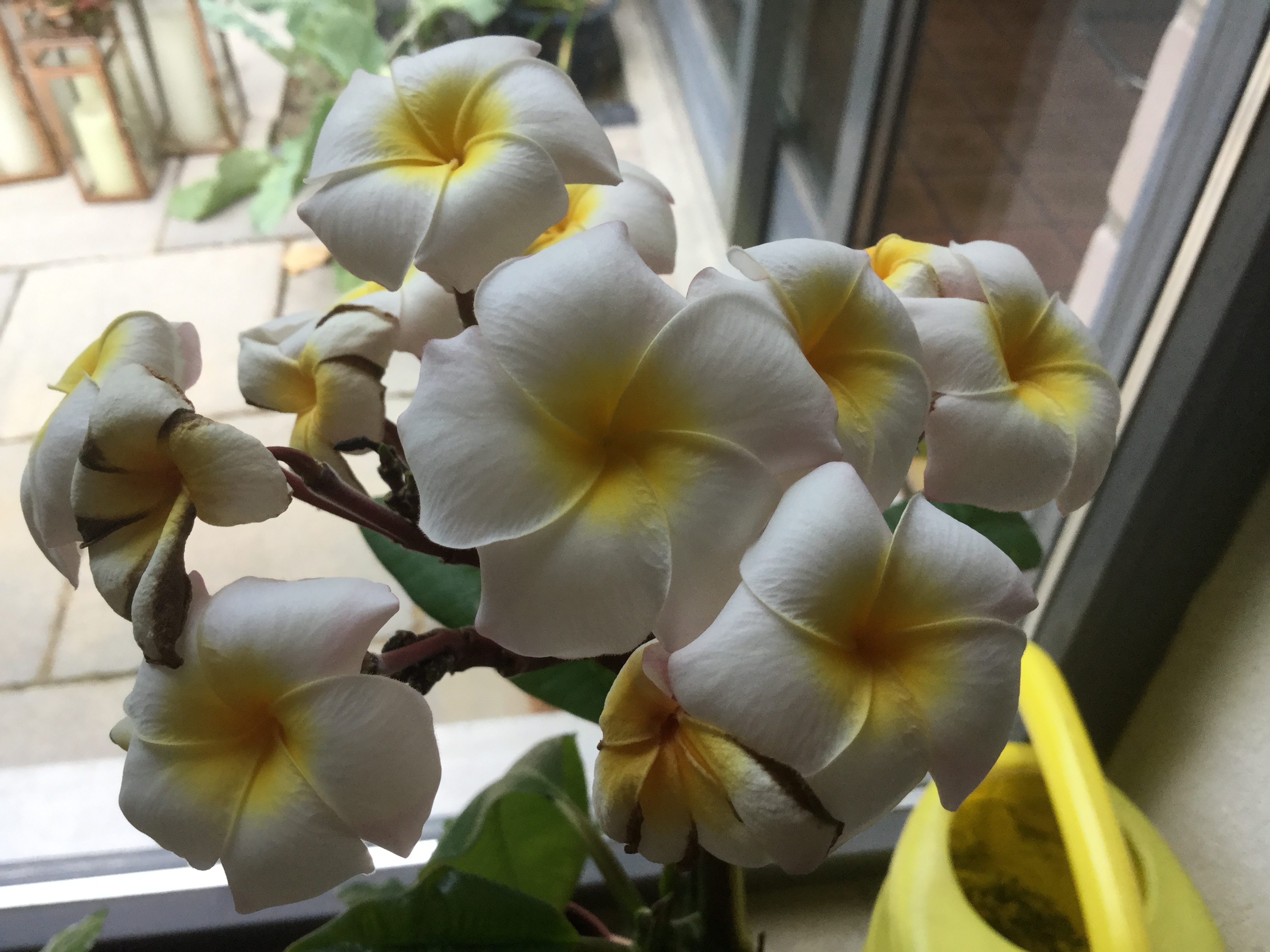 So, eine meiner Plumeria alba blüht endlich.... Die Blüten sind toll, sie duftet aber leider nur ganz leicht.