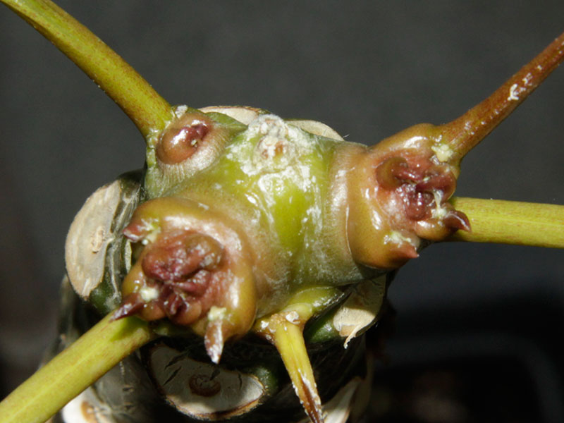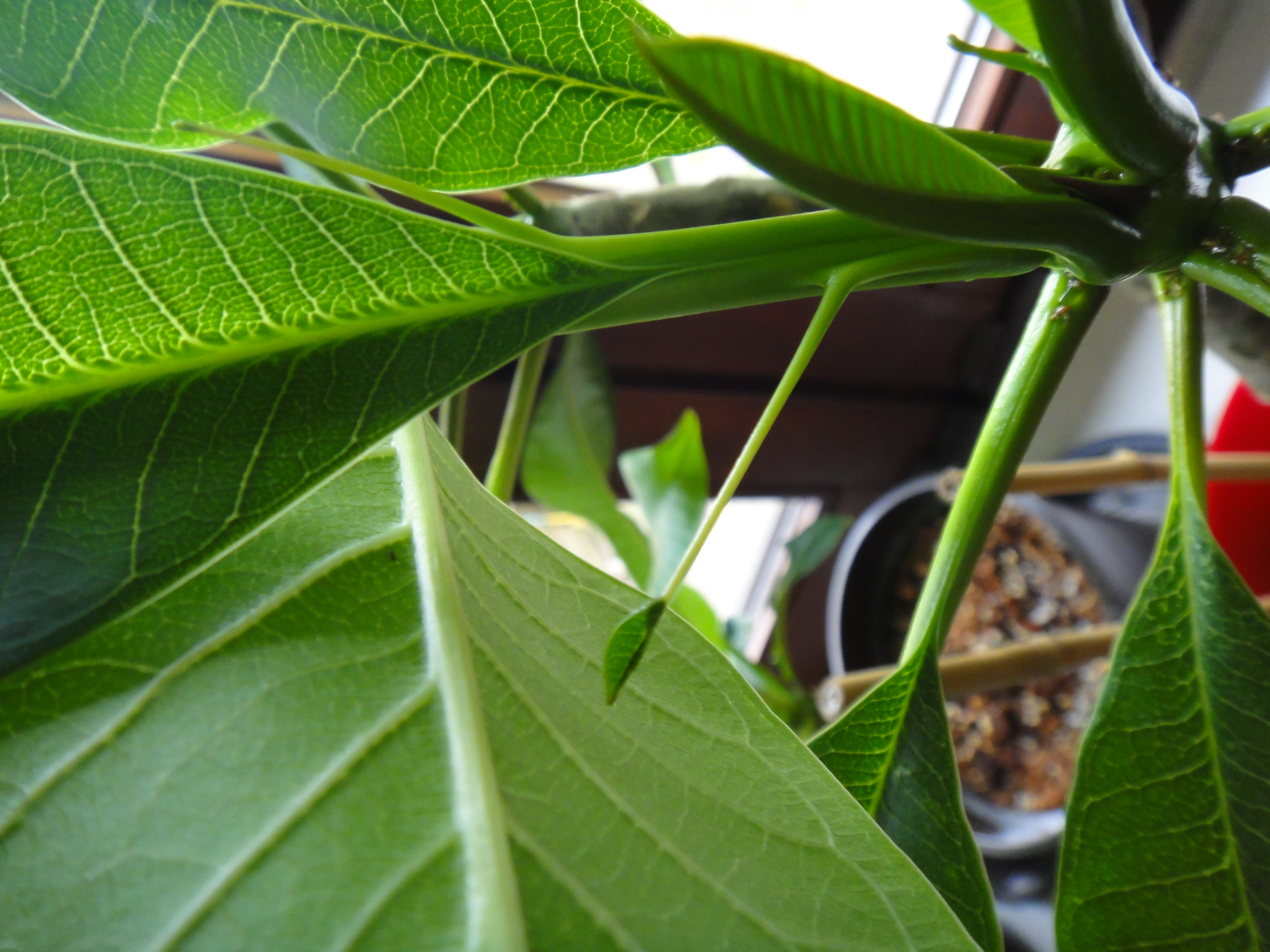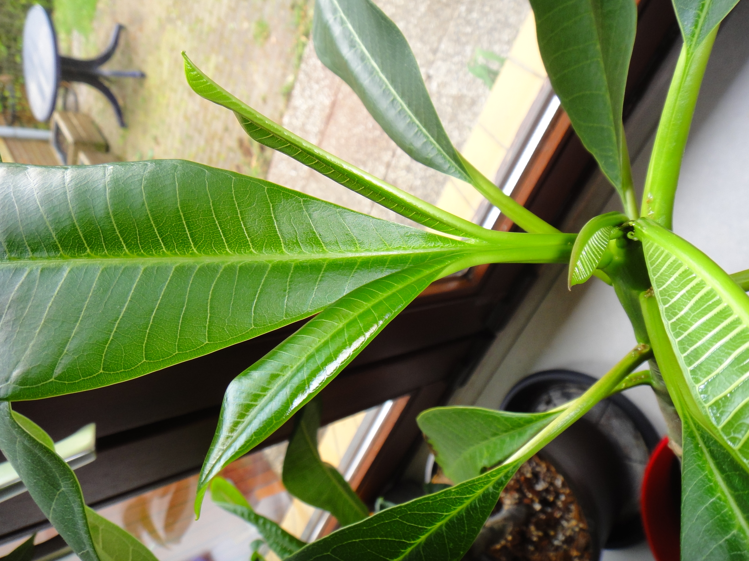 meine Frangipani kriegt neuerdings Blätter an den Blättern und nicht mehr von der Mitte aus.
