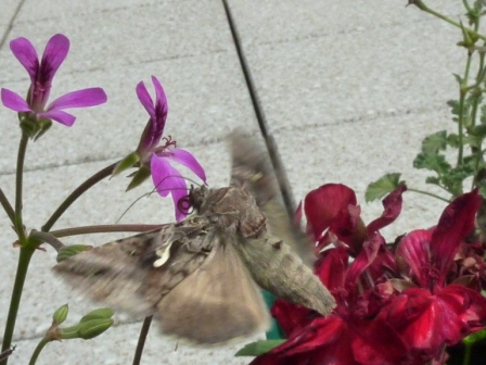 Ich habe auch noch was, eine Gammaeule. Diese Falter stehen wie kolibris vor den Blüten und sind beim fotografieren meistens schon weg oder nur als Schatten sichtbar, weil sie die Flügel so schnell bewegen. Aber hier hat es mal geklappt