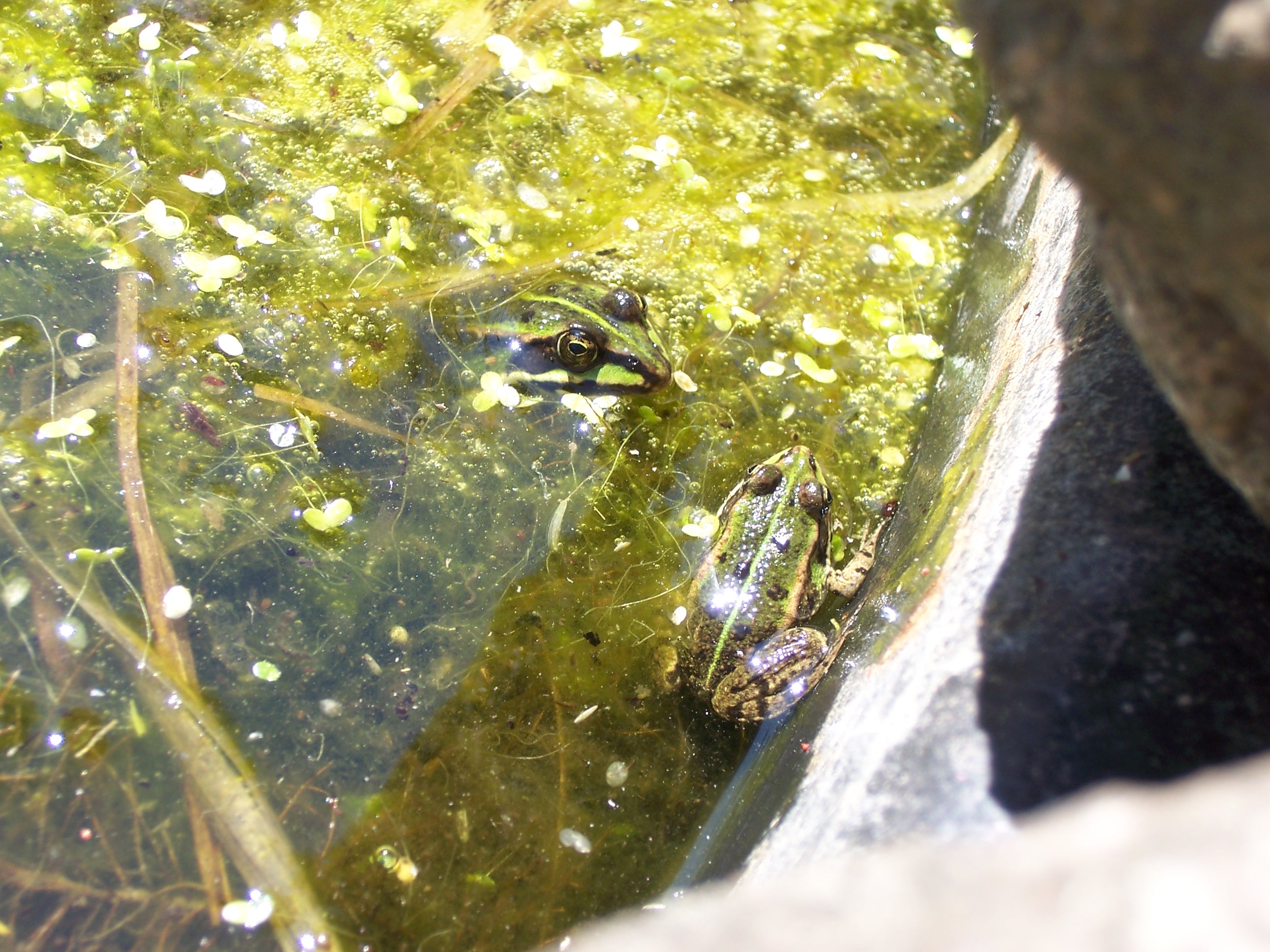 ich hab in diesem jahr schon 4 frösche in meinen Teich bekommen: hier ein Foto als es noch 3 waren--komisch die hocken immer an der selben Stelle