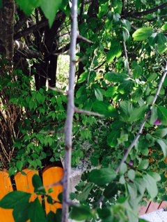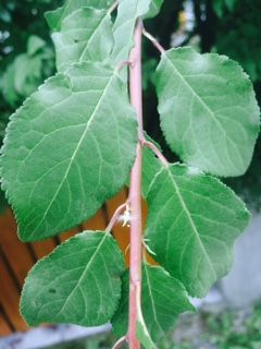 Der Strauch blüht weiß und trägt jetzt viele kleine blau-violette Früchte, die wie Minipflaumen aussehen - auch der kern ähnelt dem eienr Pflaume. Der Strauch hat aber lange Dornen an den Ästen !?