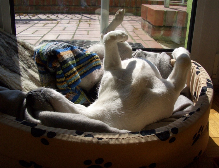 Katzen können sich auch so super herrlich verbiegen. Manchmal hat man sowohl bei Hunden als auch bei Katzen das Gefühl, je unbequemer desto gemütlicher