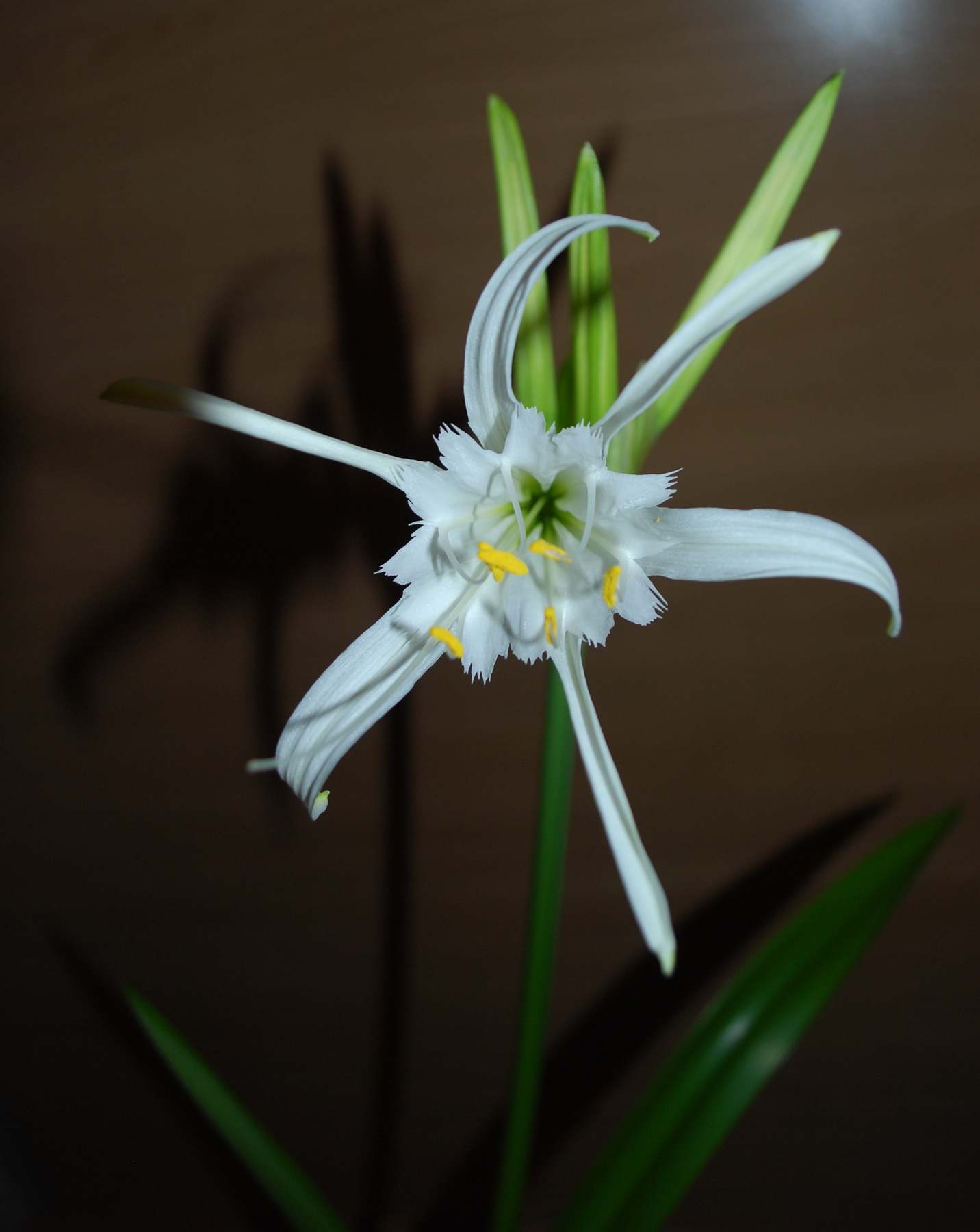 bei mir hat die spinnenlilie ihre erste blüte geöffnet
