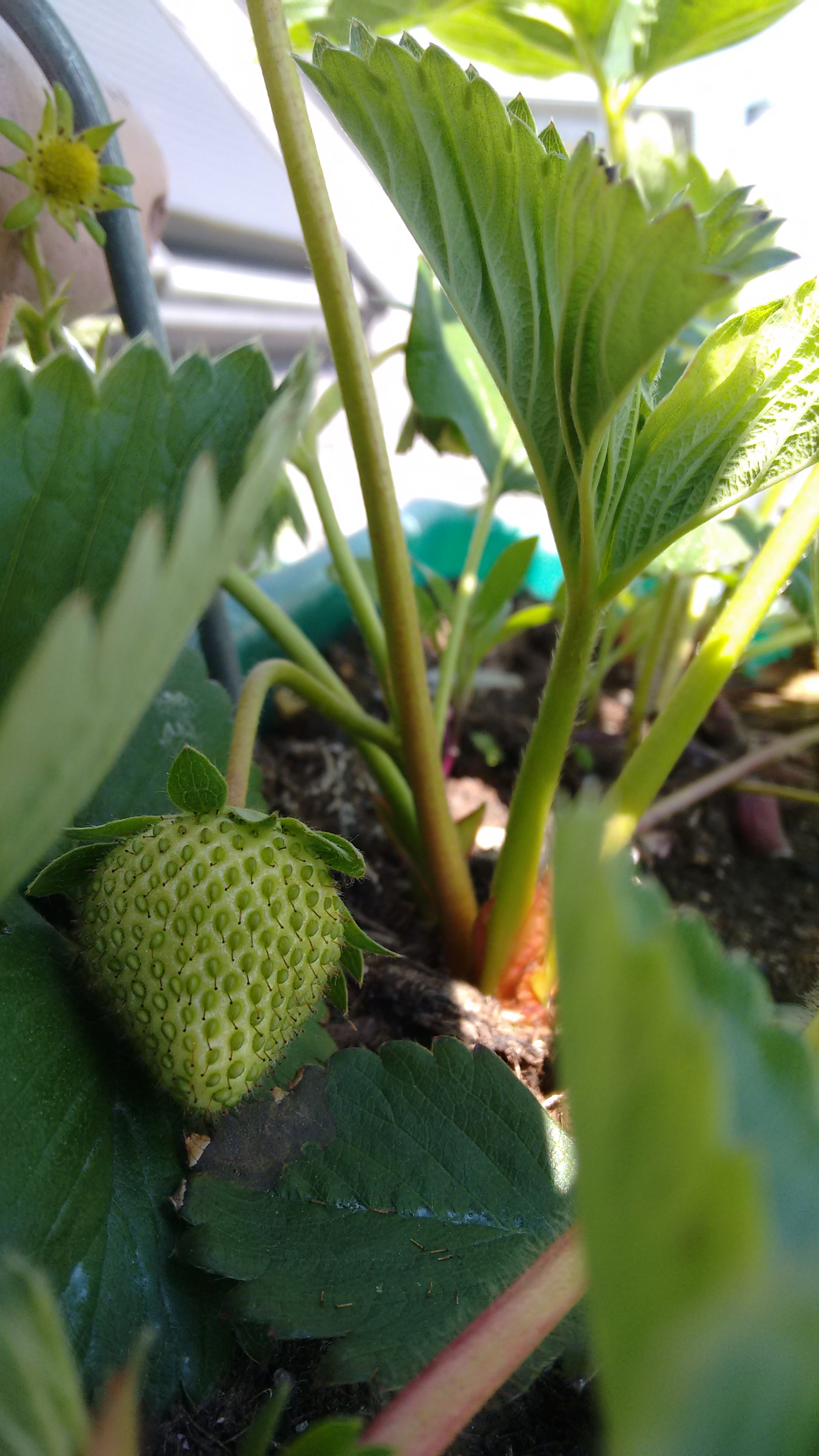 Die Erdbeerpflanze hatte heute übrigens schon rosane Erdbeeren, und Balkon-Radischen haben wir auch schon gegessen (da sind Samen von den ausgewachsenen Pflanzen von letztem Jahr von alleine aufgegangen, und die Kälte hat ihnen anscheinend nix gemacht)