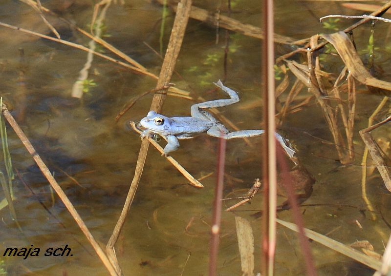 Moorfrösche, die legen sich gegen Frühjahr ein blaues Prachtkleid zu.