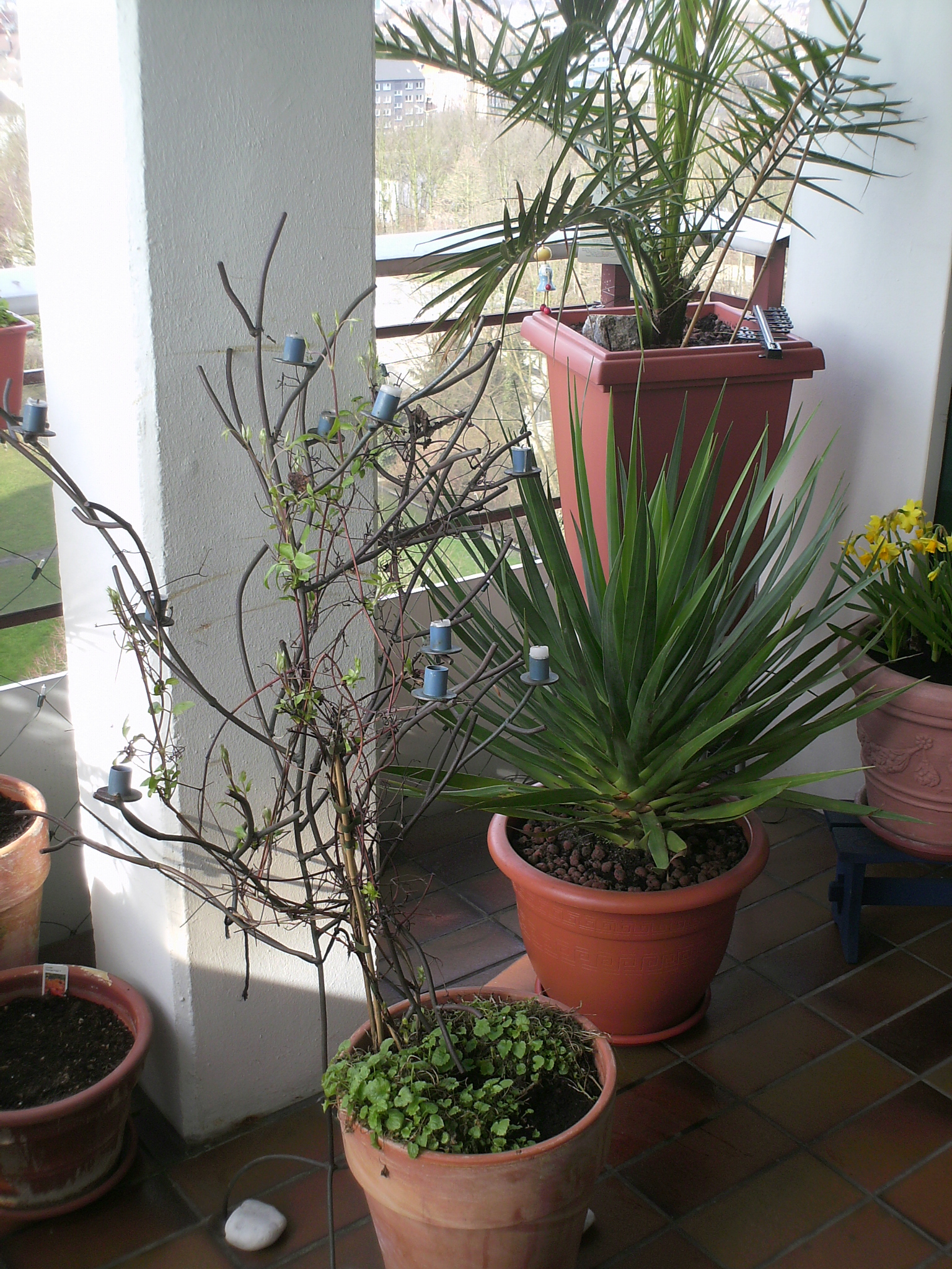 meine Clematis alpina treibt auch, von dickeren Knospen bis zu einem Trieb der bereits ca. 5 cm lang ist in einem geschützteren Bereich. Die Topfrosen schauen aus wie im Sommer, schönes dunkelgrünes Laub, die jungen Triebe sind nun normal ausgefärbt und kaum noch als jung zu erkennen. Die gepflanzten Rosen machen entweder gar keine Anstalten oder treiben auch schon fleißig. Ich bin so froh, dass ich bisher nichts eingepackt habe und im Herbst einfach nur zu faul dafür war, so wurden die ganzen Pfanzen nicht unnötig aufgewärmt..