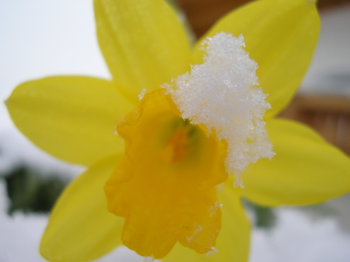 Bei uns wachsen die Osterglocken zur Zeit waagerecht (bei Windstärke 12!)