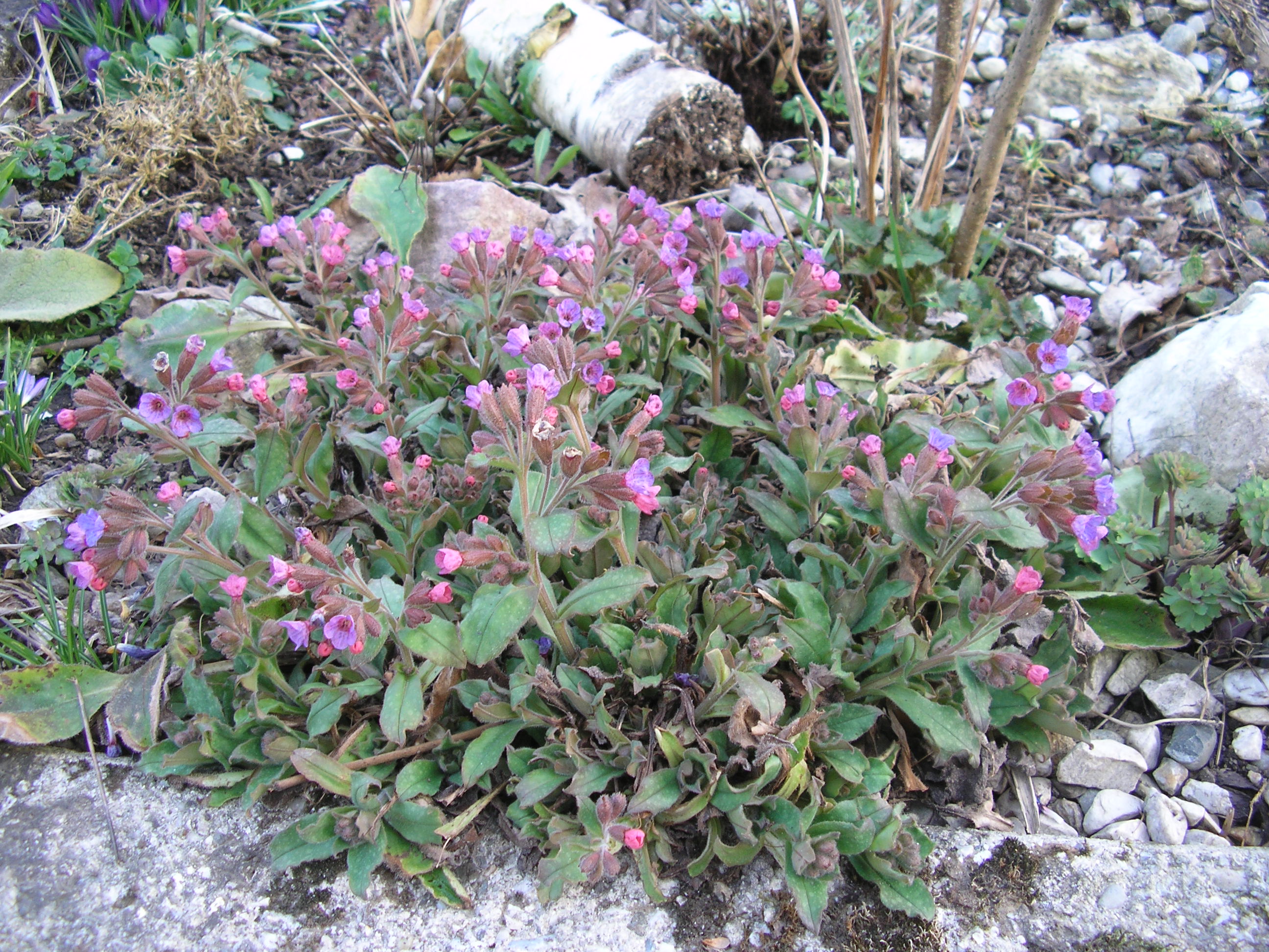 Kleine Zwergnarzisschen die ich in der Blumenwiese verwildern lasse, die Krokusse und Gänseblümchen die den rasen in ein blütenmeer verwandeln, eine Kissenprimel die sich besonders üppig entwickelt hat und ein Lungenkraut im Waldbeet.
