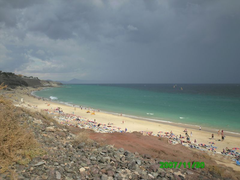 Wie eigentlich in jedem Jahr,so waren wir auch dieses Jahr, im November auf Fuerteventura Wir lieben diese ruhige Insel zur Erholung....Abschalten,Strandwandern,neue Kräfte sammeln.....und auch Samen und Pflanzen... Im ersten Moment meint man,auf dieser Insel leben sicher noch Dinosaurier....und von Pflanzen und Menschen keine Spur... Denkste!!Je weiter man nach Süden fährt,desto bewohnter und grüner wird es...Die Strasse bei Costa Calma ist ein Highlight an Farben..da wachsen gelbe,orange und pinkige Bouganville und immer wieder Palmen...Sehenswert ist auf alle Fälle auch die etwas rauhe Westküste,die über schwarzen Sand verfügt.Dort wachsen überall Agaven,mit Massen Alegern....Ich gestehe....ich mußte einfach mal dran rütteln und welche mitnehmen Bei Corralejo überkommt einen ein "Wüstengefühl"....Wir sind regelrecht in einen Sandsturm geraten und waren froh,im Auto zu sitzen und nicht aussteigen zu müssen Wir wohnen entweder in Esquinzo,wo wirklich gar nichts ist ausser der Hotelanlagen und dem wunderschönem,superlangem Strand ,oder in Jandia...wo es auch viele Geschäfte gibt.Viel Spass beim Bilder gucken!LG Sylvia