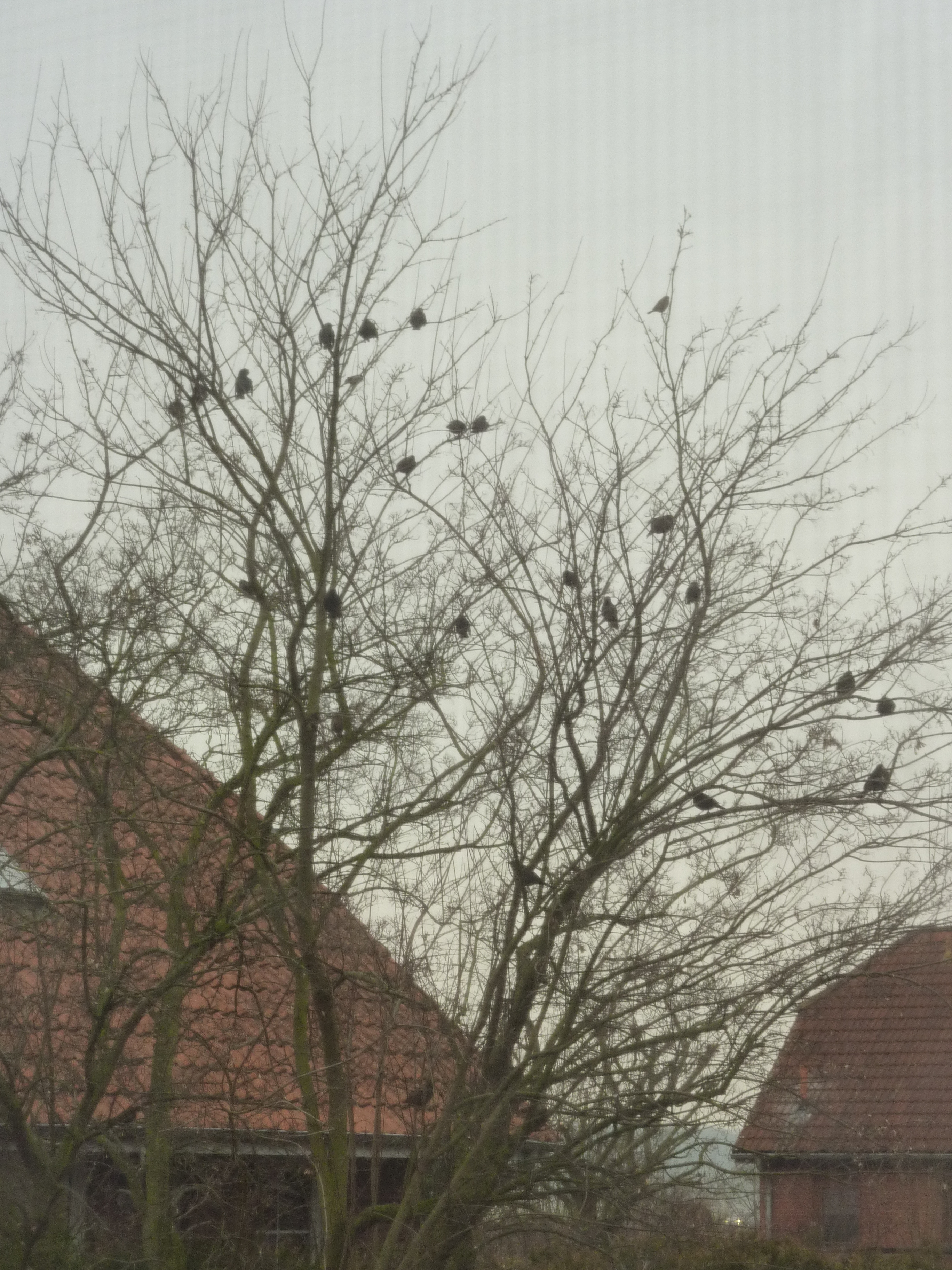 Ringel- und Türkentauben gucken ab und zu vorbei. Diverse Meisen, Grünfinken, Spatzen, Stieglitze und Buchfinken räumen die Futterstellen.