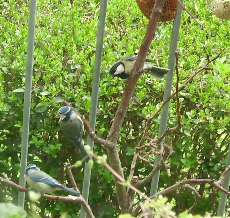Am Freitag war der ganze Garten voll mit Kohl- und Blaumeisen und mit Zeisigen, nicht mal der Regen konnte sie abschrecken. Leider hatte ich gerade an dem Tag keine Zeit um mir das Schauspiel anzusehen.