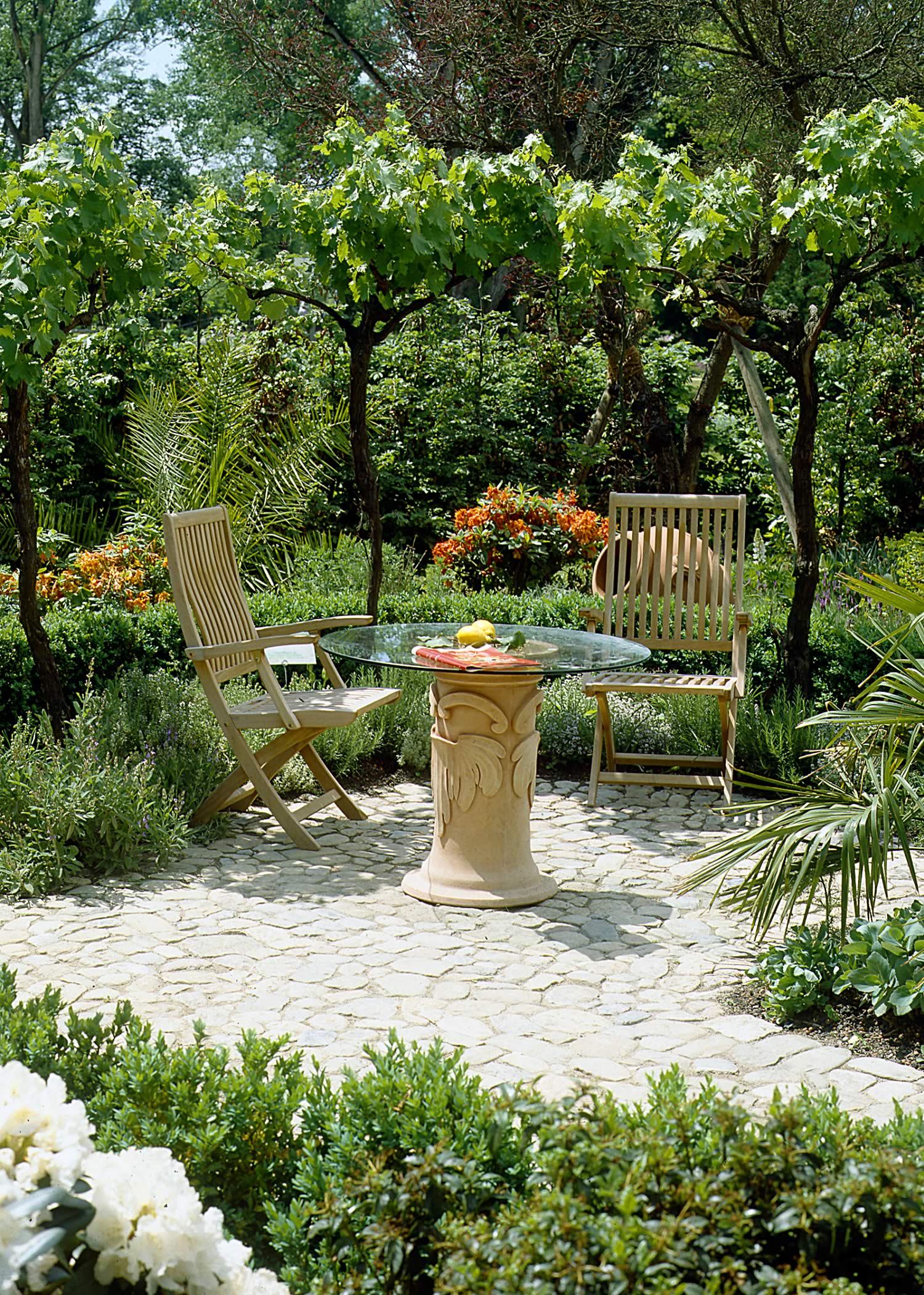 Der aus Argentinien und Paraguay stammende Enzianstrauch (Solanum rantonnetii) bezaubert von Mai bis September mit einer Fülle enzianblauer Blüten. Mit seinen bogig überhängenden, zierlichen Trieben wirkt diese filigrane Kübelpflanze duftig-locker und beschwingt. Die aus dem Süden Kaliforniens stammende Goldbusch-Zypresse (Cupressus macrocarpa ?Goldcrest?) bringt einen ganz anderen Farbton auf die sommerliche Terrasse: Sie fasziniert mit feinen goldgelben Nadeln und einem außergewöhnlich schlanken Wuchs, der Assoziationen an die schmalen Zypressen des Mittelmeerraumes weckt. Häufig wird sie als Zimmerpflanze verkauft, sie gedeiht aber besser, wenn sie in der warmen Jahreszeit draußen an einem hellen bis halbschattigen, nicht vollsonnigen Standort steht.