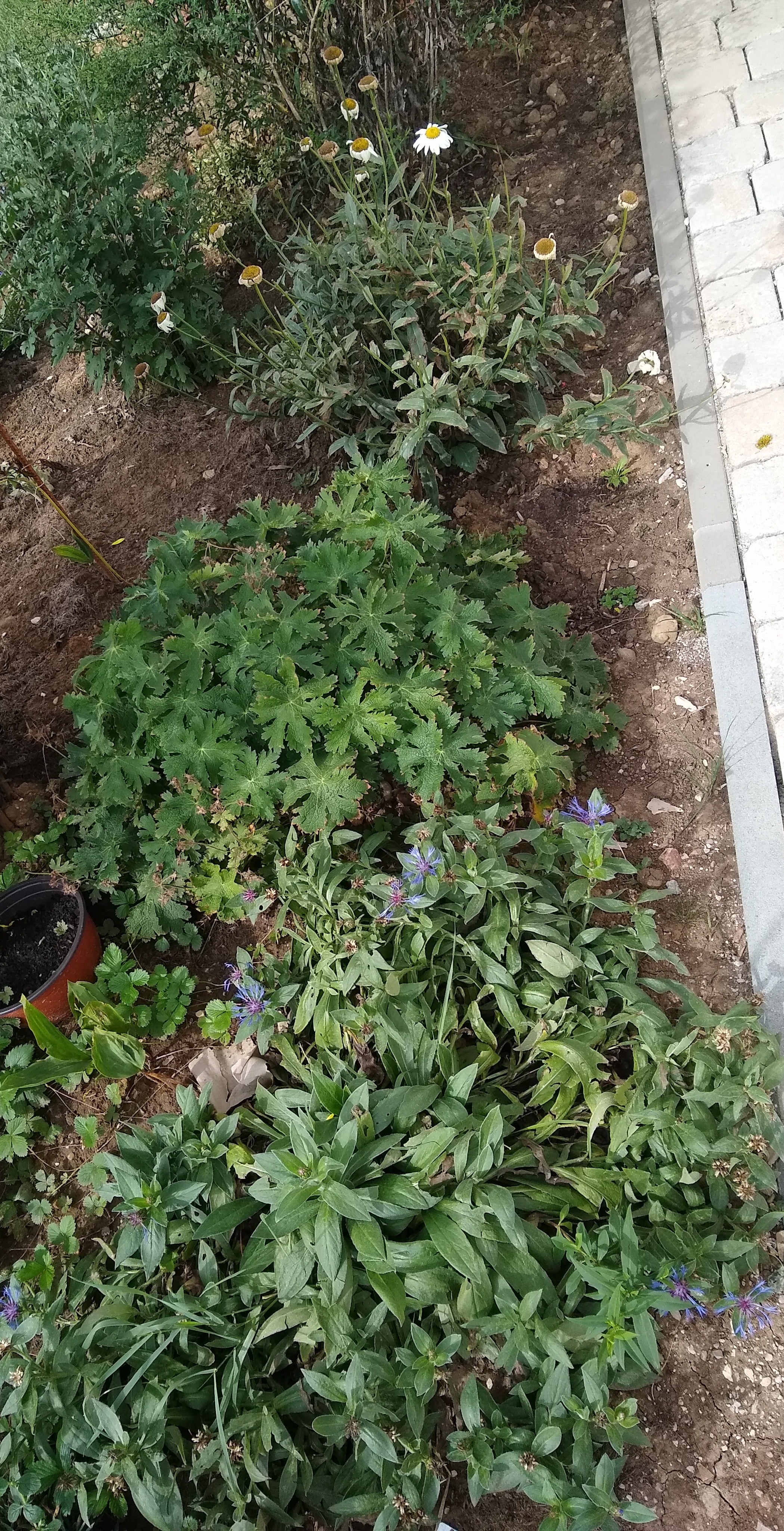 Das Laub des Storchenschnabels find ich ganz schön aber gleich danach die Margeriten find ich furchtbar. Die sind wirklich nur schön, solange sie blühen aber jetzt... auch da find ich das Laub überhaupt nicht ansprechend.