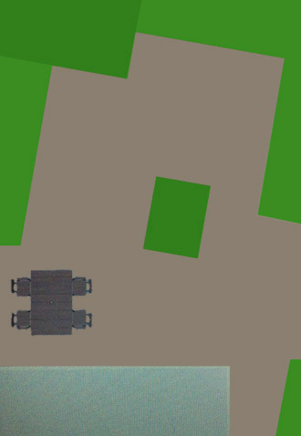 In die Mitte der Fläche würde ich auch eine Pflanzstelle einrichten lassen - ggf. mit einem kleinere Baum oder Strauch oder auch nur Stauden und ggf. Jahreszeitenpflanzung - Größe ca. 1,60 x 1,60.