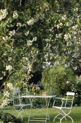Wem die köstlichen Düfte Lust auf mehr machen: Auf selbst geerntete Gaumenfreuden muss auch nicht verzichten, wer mehr Zeit im Liegestuhl als im Gemüsegarten verbringen möchte. Viele Nutzpflanzen lassen sich hervorragend mit Ziergewächsen kombinieren und fügen sich ganz natürlich in den Garten ein. Der Blaubeerstrauch im sauren Boden des Rhododendronbeetes oder die Kiwipflanze, die von der Sonne verwöhnt entlang der Pergola über die Terrasse rankt: Fruchtgenuss in überschaubaren Portionen, die einem fast bis in den Mund wachsen. Zustände wie im Märchen! Die gute Fee ist in diesem Fall der Landschaftsgärtner, der geschickt die Bereiche für Nutz- und Ziergarten miteinander verwebt. Er legt den Garten so an, dass der Pflegeaufwand minimal bleibt und dem Berufstätigen genug Zeit lässt, seine grüne Oase auch zu genießen. Der - zurückgekehrt von des Tages Mühen - sinkt in den Liegestuhl, genießt die letzten Sonnenstrahlen und sieht den Hummeln zu, die Nektar sammelnd durch den blühenden Lavendel schwirren. Frösche quaken am Teich. Pflanzen wie das kletternde Geißblatt am Zaun entfalten erst nach Sonnenuntergang ihren betörenden Duft. In der einbrechenden Dunkelheit erscheinen alle Gerüche und Geräusche besonders intensiv. Das Zirpen der Grillen, die duftenden Kräuter in den Pflasterfugen – ein Urlaub in der Provence ist auch nicht schöner! Vor der gemauerten Feuerstelle lässt es sich auch bei abendlicher Kühle noch gemütlich sitzen. Die Holzscheite verglimmen langsam in der Dunkelheit. Ein letztes Glas Rotwein, dann ist es tatsächlich schon Zeit, zu Bett zu gehen.