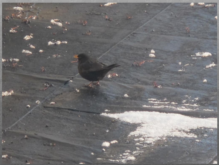 Also das dicke ist eine Amsel und die anderen Stieglitze. Sie warten auf dem Kirschbaum, bis ihre Futterstelle wieder frei ist.