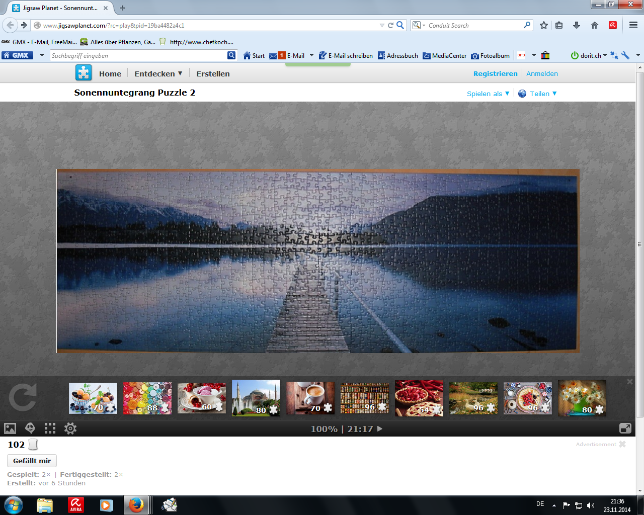 http://www.jigsawplanet.com/?rc=play&pid=21034d0b3907http://www.jigsawplanet.com/?rc=play&pid=19ba4482a4c1aber ich kann dir gerne sagen, warum ich hier nicht weitergemacht hatte: Seitdem man die Teile-Anzahl da selber einstellen kann, ist es meiner Ansicht nach irgendwie sinnlos geworden, die Puzzleteilanzahl selber noch zu wählen,z.b. 150 Teile und derjenige puzzelt dann mit 24 Teilen - das ist ja nicht Sinn der Sache