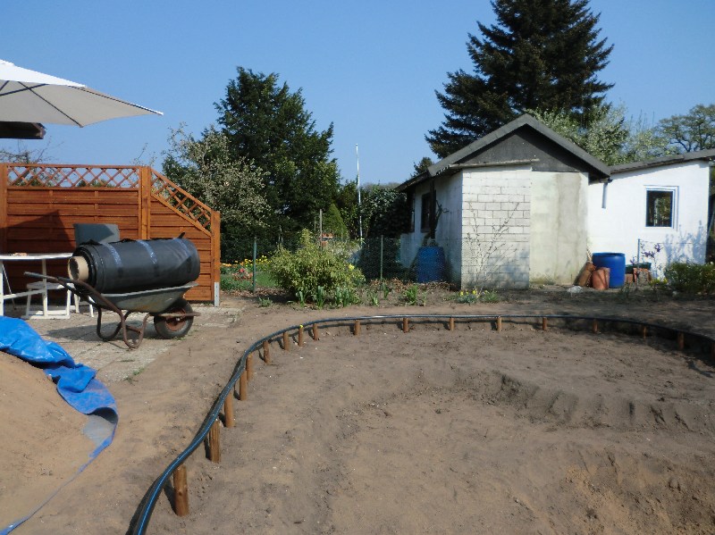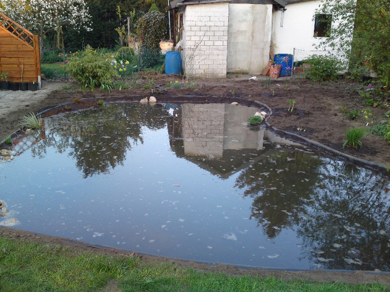 Ja, die Enten machen bei uns Teichhopping. Wühlen einmal den kompletten Teich durch (sieht man auch ganz gut auf dem Foto. Das Wasser ist sonst glasklar), schlafen und fliegen zum nächsten Teich des Nachbarn. Molche, Frösche, Kröten, Libellen und alles was es noch so gibt kann man das ganze Jahr zu jeder Zeit beobachten. Viele Vögel kommen zum Baden und das Ufer wimmelt von durstigen Bienen. Fische habe ich bewusst keine. Dafür brauche ich keine Technik. Regenwasser wird vom Dach über die Regenrinne in den Teich geleitet. Manchmal muss ich aber Grundwasser zulaufen lassen, da recht viel Wasser verdunstet und die Pflanzen viel trinken. An einer Stelle habe ich die Umrandung etwas (nicht viel) tiefer gemacht. Dort kann das Wasser ggf. gezielt überlaufen und versickern.