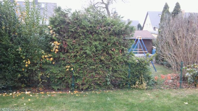 Eine komplette Sichtschutzhecke will ich eigentlich auch nicht. Ich hätte lieber viele einzelne Büsche und Sträucher entlang des Zauns gesetzt. Das braune Gestrüpp im Winter stört mich nicht, da sitze ich ja auch eher selten auf der Terrasse beim Kaffee trinken. Höchstens eben im Sichtbereich der Terrasse drei oder vier Immergrüne Pflanzen, das sollte sich aber ins Gesamtbild einfügen. Ich will auch keine Hecke die ich großartig zuschneiden muss (wie beim Liguster der Fall) da ich ja schon zwei große Hainbuchenhecken pflanzen musste und mir die zum Schneiden durchaus reichen!
