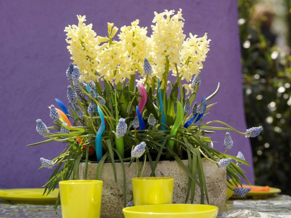 Schöne, im Herbst mit Blumenzwiebeln und Knollen bepflanzte Gefäße machen nicht nur Balkon- und Terrassenbesitzer glücklich. Sie sind auch praktisch, um im Frühling an Stellen im Garten, denen noch Farbe fehlt, blühende Akzente zu setzen. Auch gepflasterte Flächen ums Haus oder direkt neben dem Hauseingang lassen sich im Frühling mit blühenden Zwiebelblumen in Töpfen oder Kästen beleben.