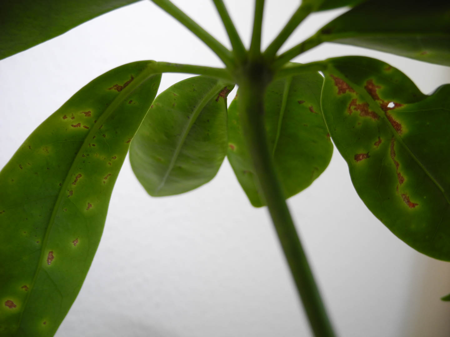 bei meiner Strahlenaralie ist gerade irgendwas vermurkst. Ich weiß nicht obs ein Schädling ist, oder irgendwas anderes. Tierchen seh ich nirgends. Jedenfalls haben die neueren Blätter richtig hässliche Flecken, bzw sogar Löcher. Und die ganz frischen Blätter sind so richtig verkümmert. Kann mir jemand sagen was das ist?