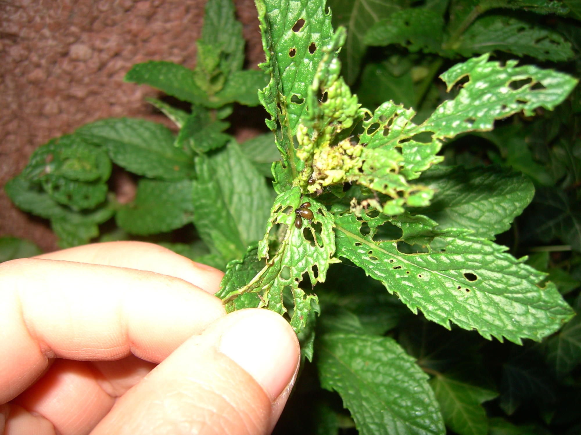 wie der Titel schon sagt, hab ich einige komische Käferchen an meiner Minze im Garten entdeckt, die bald das ganze Blattwerk verputzt haben.