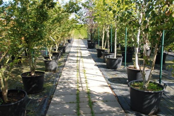 Werden mehrere Sträucher oder Bäume nebeneinander gepflanzt, muss auf einen angemessenen Abstand geachtet werden. In der Baumschule ist der Abstand zwischen den Gehölzen ein Qualitätskriterium. Stehen die Gehölze zu eng bei einander, behindert das ihre Entwicklung - das gilt ebenso im Garten.