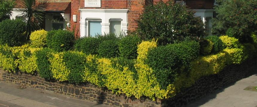 Außer Belascohs und Stellas Pflanzen könnte man noch Berberitzen empfehlen mit rotem oder grünem Laub, die sind auch geschnitten sehr schön anzusehen.