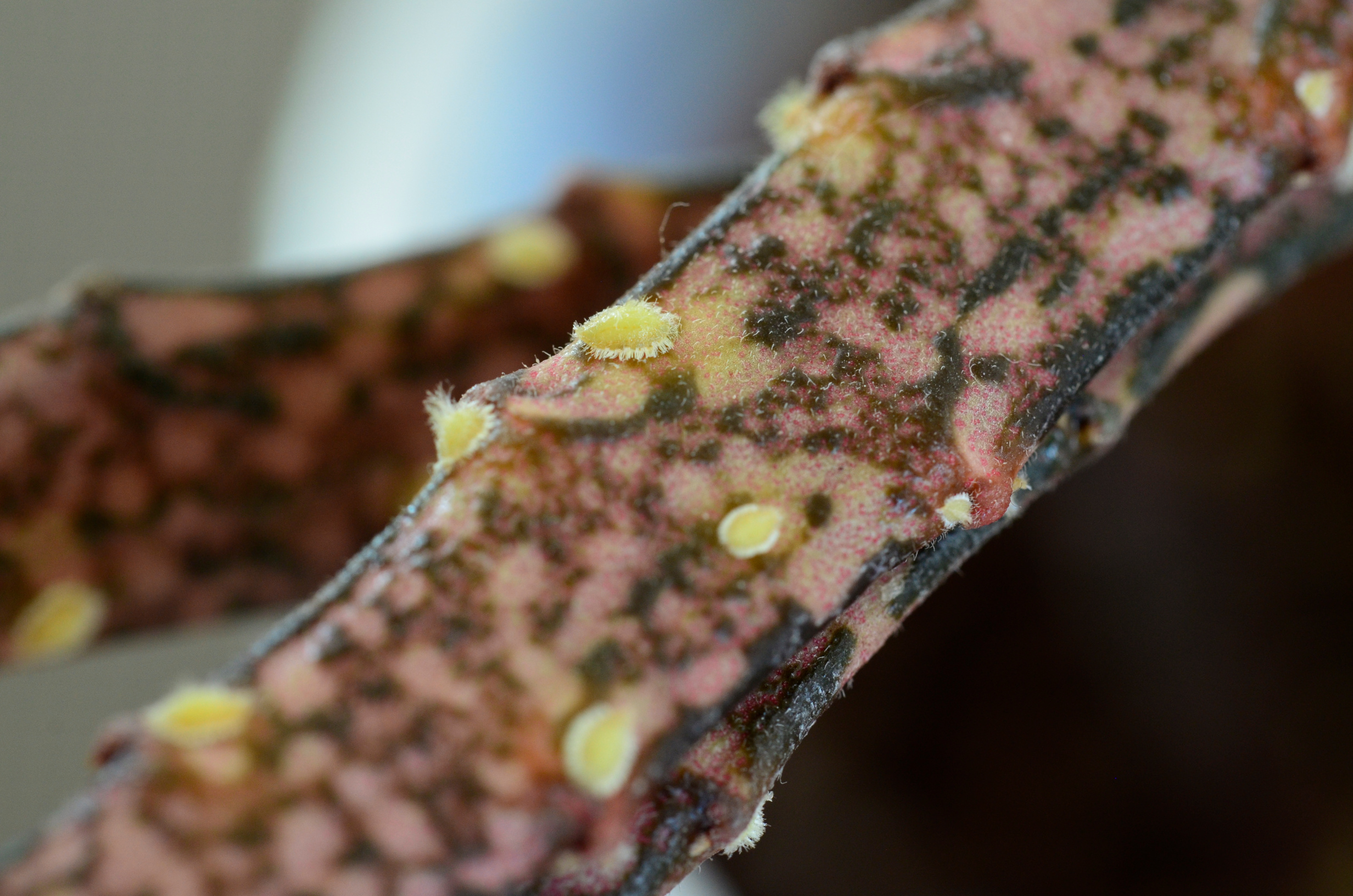 meine Euphorbia platyclada weißt gelbe Schädlinge auf, die ich nicht identifizieren kann. Da wir die Pflanze erst vor kurzem gekauft haben (Baumarkt...), weiß ich nicht, ob sich das so erst im Laufe der Zeit entwickelt hat oder es sich um mit aus dem Baumarkt bezogene Schädlinge handelt. Der Form nach könnte es sich um eine Art haarige gelbe Schildläuse handeln, allerdings konnte ich nirgends etwas finden, was tatsächlich genau so aussieht.