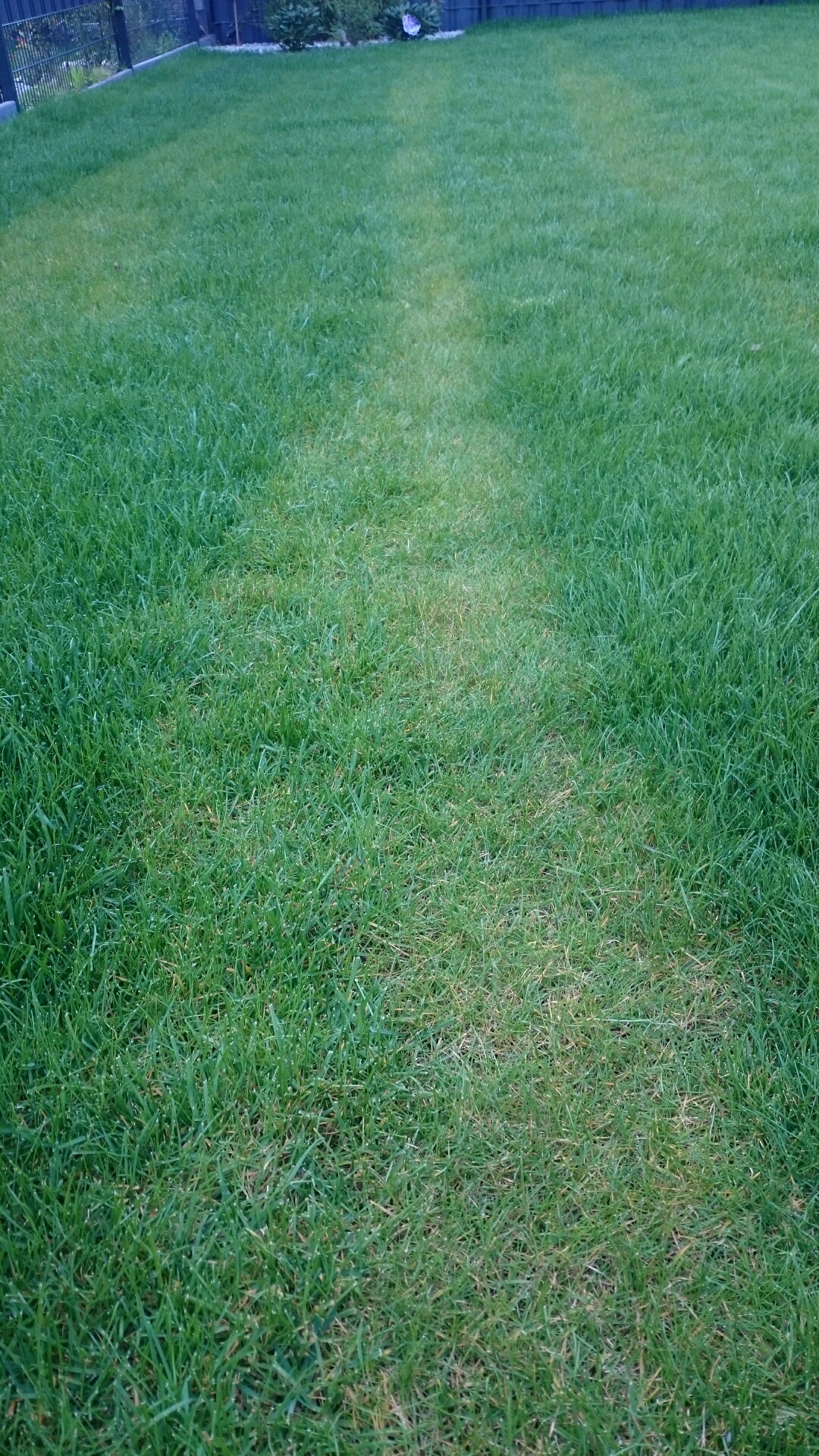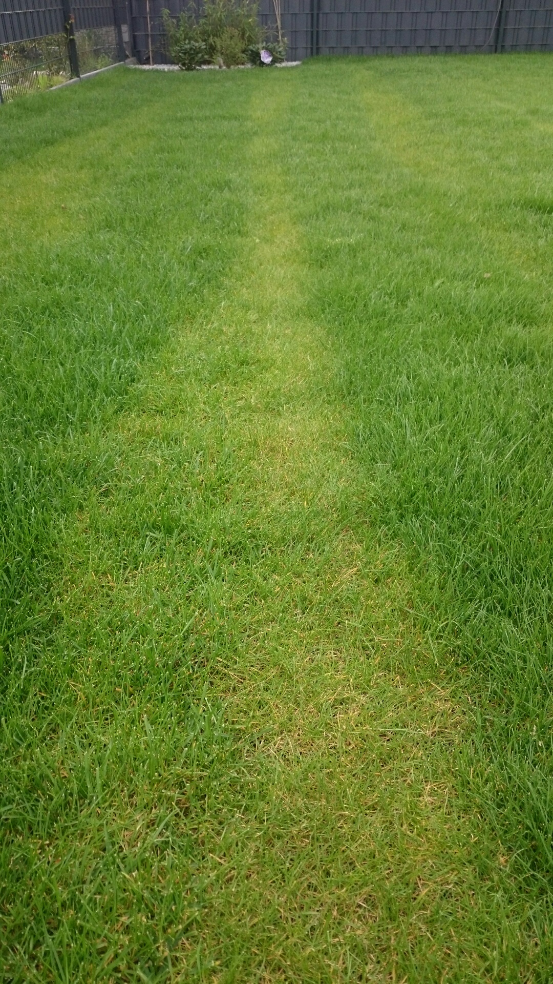 Es stellt sich jetzt die Frage: wurde der Rasen an den gelben Stellen überdüngt und ist daher verbrannt (Gießen nach dem Düngen übernahm ein sehr starker Regenguß etwa 12 Stunden nach dem Ausbringen des Düngers) oder ist genau auf diesen Stellen zu wenig Dünger ausgebracht worden?