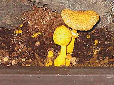 Der Fruchtkörper ist ja schnell entfernt, aber ich mache mir Sorgen um das Mycel. Der Bonsai steht in einer sehr lockeren Mischung aus Kokohum, Akadama (gebrannter Lehm) und grobem Sand. Da kann das Mycel schnell die gesamte Schale durchwuchern. Ich kann aber den Ficus weder trocken legen noch die gesamte Erde aus dem Wurzelballen waschen.