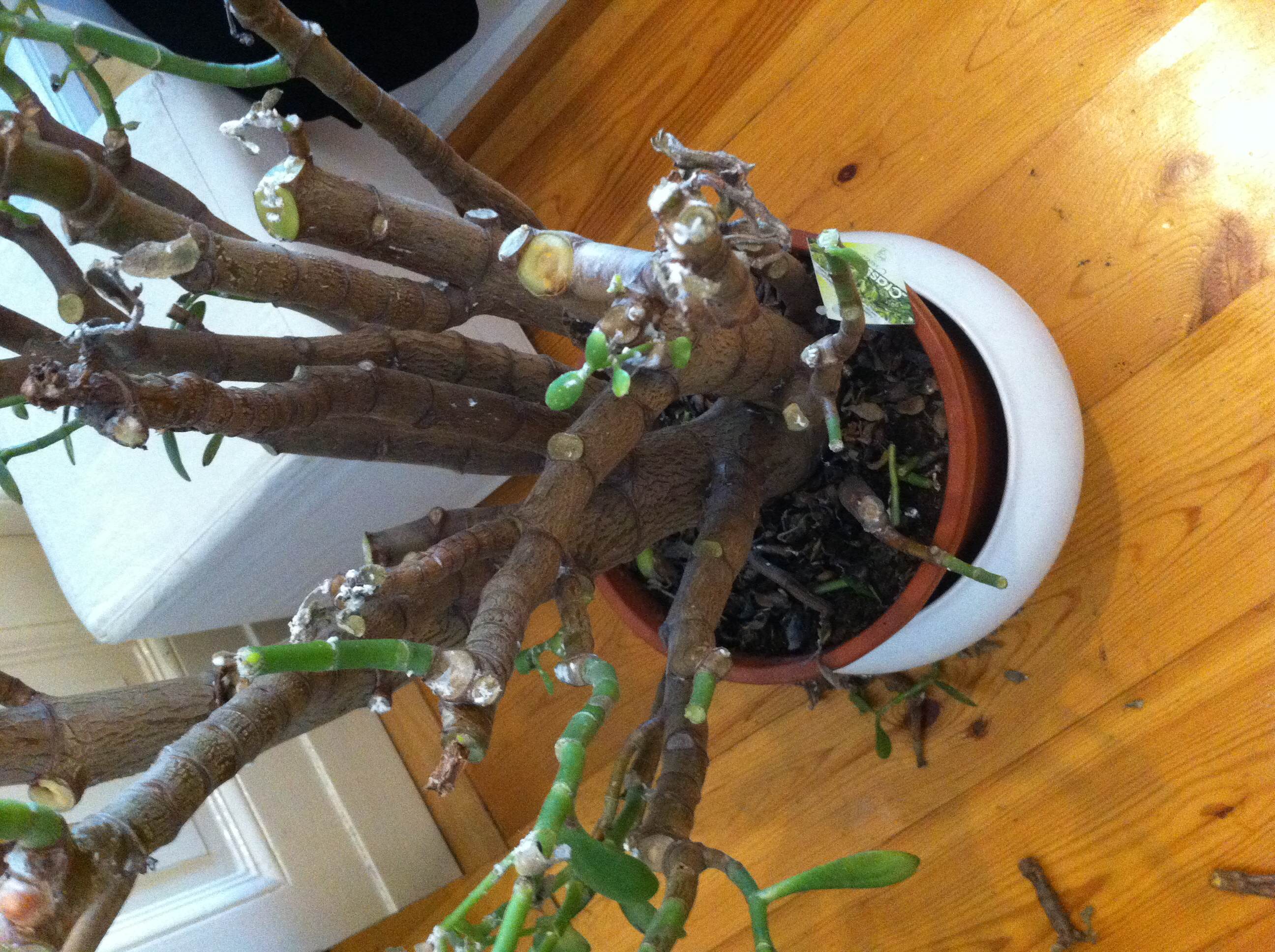 Ich habe vor ca. einem Jahr einen Geldbaum gekauft, der ca. 80 cm hoch ist. Er war wunderschön, total grün und ich muss gestehen, dass ich ihn gekauft habe, weil mir der Verkäufer gesagt hatte, dass man ihn nicht so oft gießen muss und auch generell nicht viel tun muss. Da ich leider nie Glück mit Pflanzen hatte, dachte ich dass ich hier nichts schief machen kann.. Naja, ich habe mich geirrt, anscheinend klappt es bei mir nicht mal mit "einfachen" Pflanzen (((, denn die Äste fallen jeden Tag ab, es ist nicht mal 1/3 übrig von dem was mal da war. und er sieht ziemlich traurig aus, hat weiße komische Punkte und ist total trocken obwohl ich ihn ca. einmal die Woche gieße.. Ich lade auch ein paar Fotos hoch (schade dass ich keine alten zum Vergleich habe), vielleicht kann mir jemand sagen was er hat.. ich kenne mich null aus, denke mal es wird ein Pilz sein?