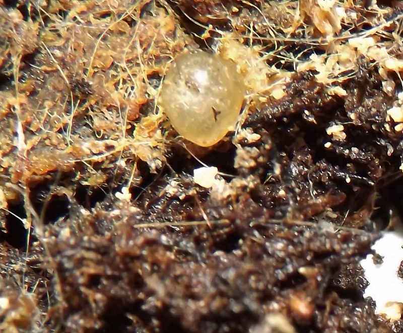 Eier? Die Kugel sind recht groß, ca. 3 mm und gelblich.