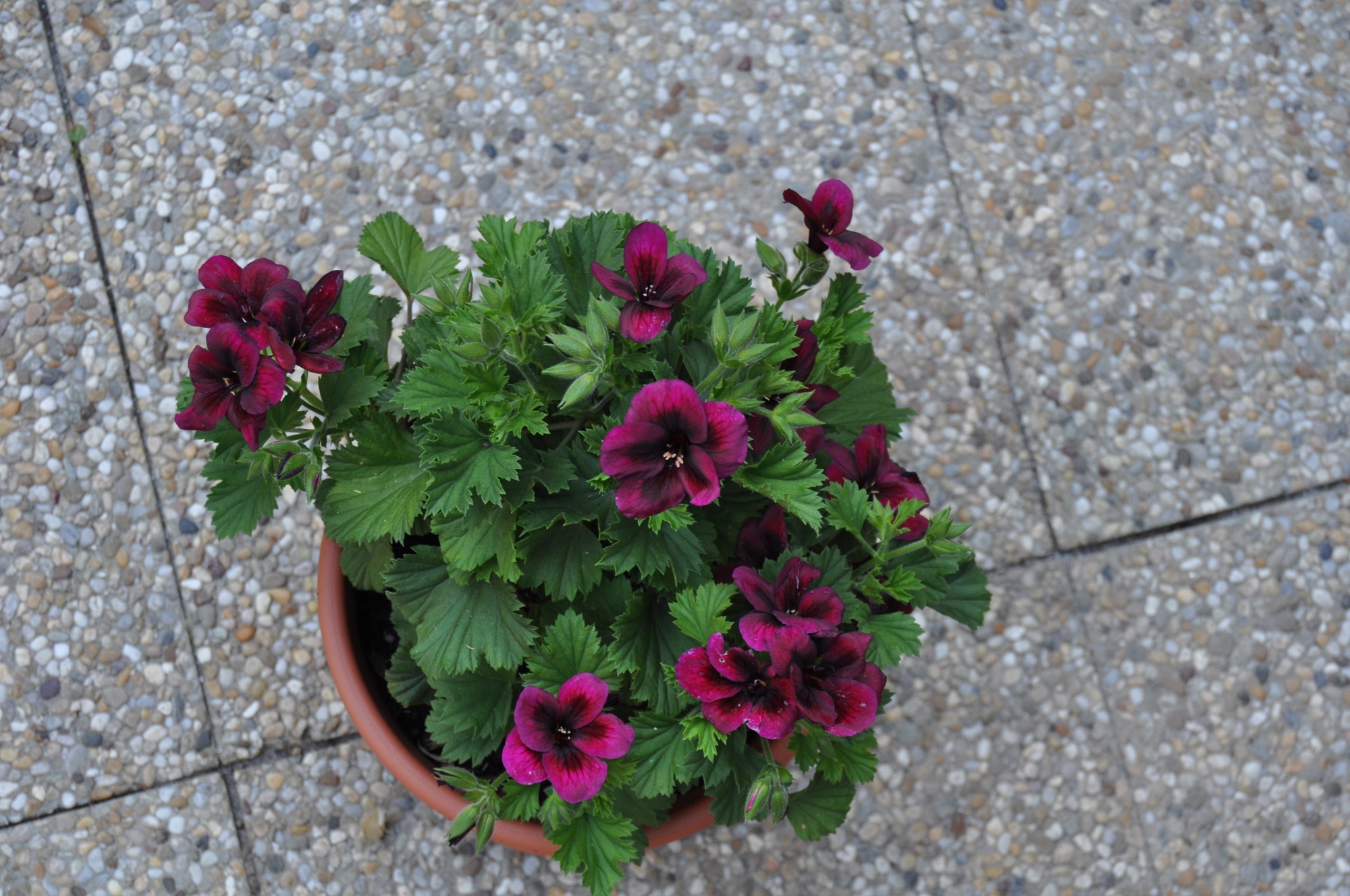Was man auf den oberen Fotos nicht so sieht, ich bin eigentlich mehr für die kleinblütigen Hänge - und Duftpelargonien, die schauen so natürlich aus. Die großen englischen sind von meiner Mutter, hat sie mal zum Muttertag bekommen.