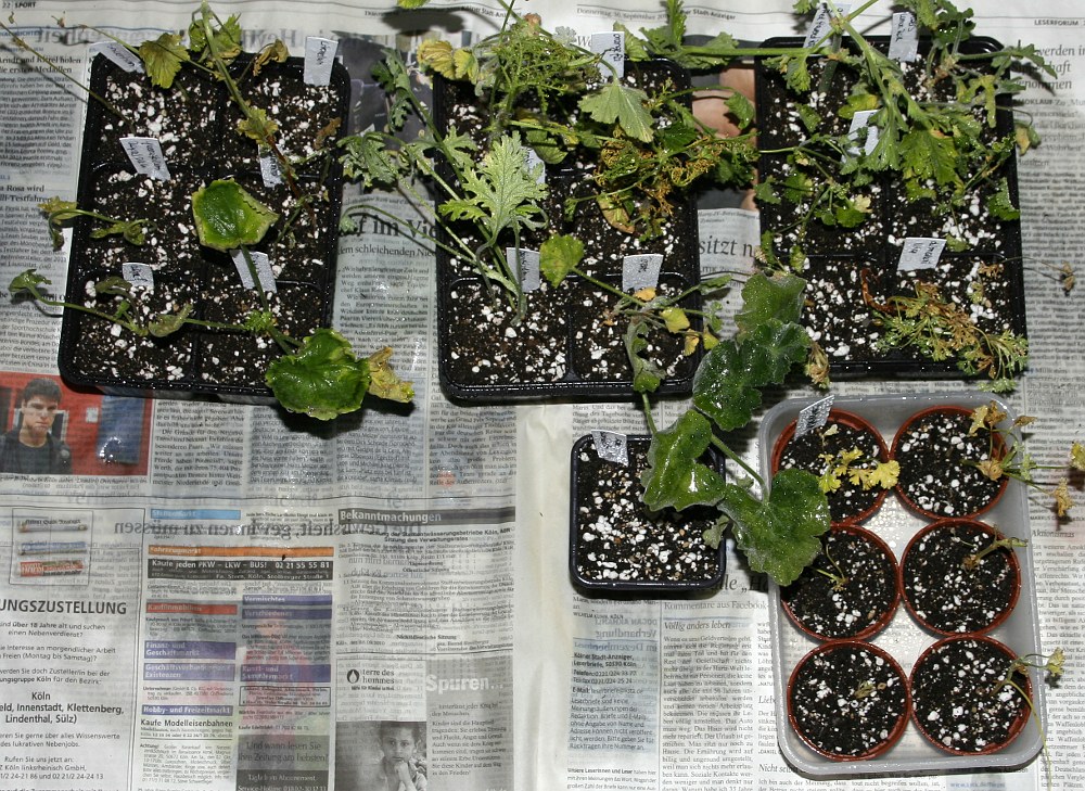 Mein helles Winterquartier habe ich erst seit dem letzten Winter.Vorher mußte ich meine Lieben in der dunklen Garage überwintern. Trotz allerbester Pflege,Pötte bei geeigneten Temperaturen herausschleppen ( allerdings auf einem Rollbrett - von GG gebaut ) und öffnen des Garagentores hatte ich mindestens 40 % Ausfälle jedes Frühjahr.Und dabei waren nur die Härteren dort untergebracht ! Der Rest war auf die Flure verteilt und die Babies unter den Dachfenstern .