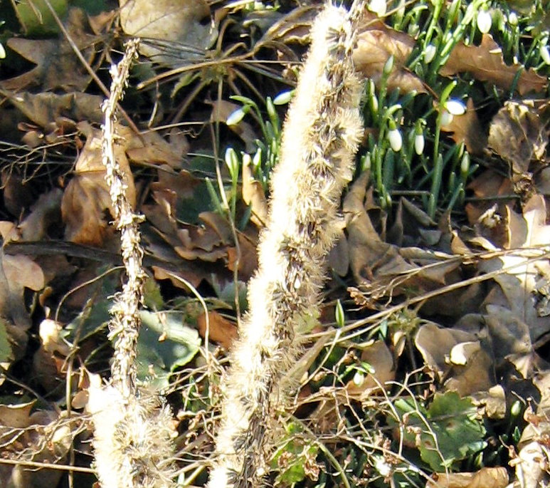 Blätter sind zurückgezogen, es stehen auch nur noch die bepuschelten Stängel da.