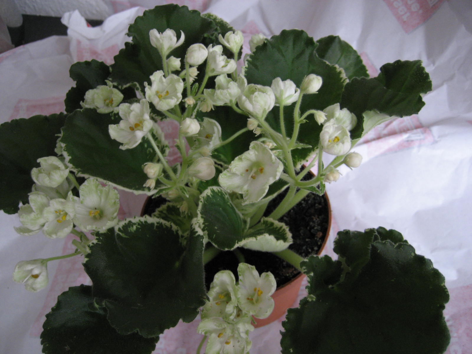 Hübsch deine zwei. Hat die erste reinweiße Blüten? Ich hab eine panaschierte mit weiß-grünen Blüten, da hatte ich die "Rosette geputzt" also die ganzen großen vergrünten Blätter abgemacht und nun hat sie eine sehr schöne Form entwickelt und ich konnte schon erste Blütenansätze ausmachen.