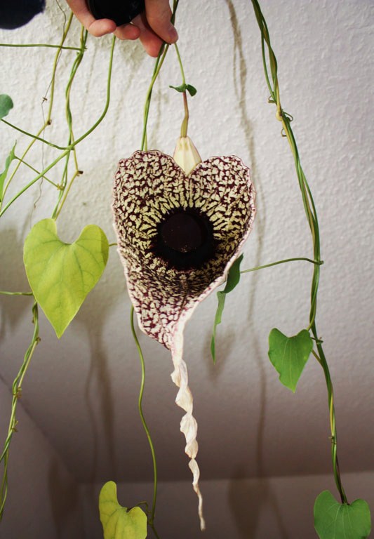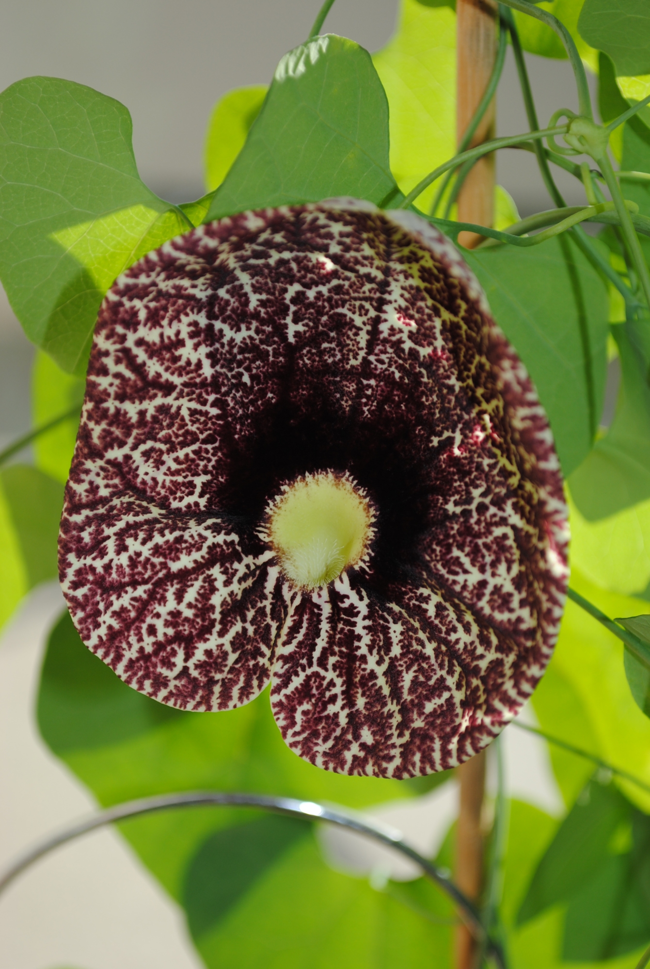 Und hier meine Aristolochia gigantea, habe sie als kleine Pflanze bekommen, wie man sieht hat es ihr unter freiem Himmel sehr gut gefallen: