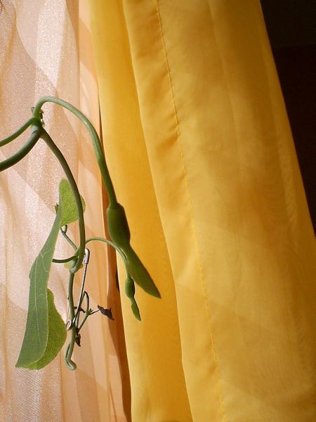 Ich habe mir so gedacht, mal ein paar Fotos von damals bis heute hochzuladen. Ich bin sehr stolz auf meine Gespensterpflanze. So stolz sogar, dass ich ein Netz über mein Kopfende vom Bett gespannt habe, an dem sie hochranken kann.