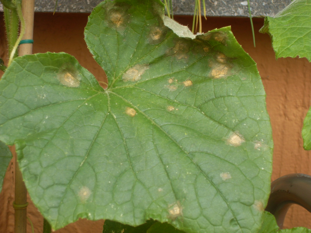 Dann habe ich gesehen, dass sich an den Blätter der Kletterzucchini weiße Flecken gebildet haben. Könnte es sich hierbei um Mehltau handeln