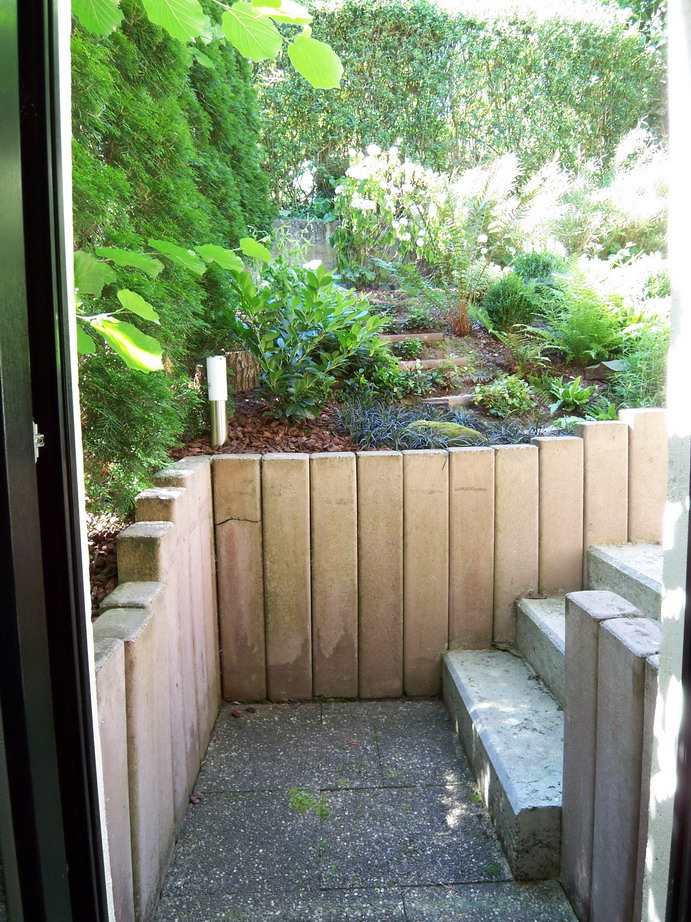 Vielleicht sollte man von Anfang an mal beginnen. Was möchtet ihr haben? Eine Terrasse zum Entspannen, zum Feiern, zum Relaxen, vielleicht doch zum nackt sonnenbaden und dann fragt euch - ist es schlimm wenn die Nachbarn sehen ob es Würstchen oder Steak gibt. Oder dass schon wieder das Pärchen mit dem glatzköpfigen Herrn und der blonden Dame da ist. Oder dass man ein Buch in der Liege liest. Jeder sieht das anders, aber ich finde man nimmt sich sehr viel Freiheit, wenn man sich so einigelt. Das schönste ist doch, wenn man eine Terrasse hat und den Blick über den Garten geniesen kann, vielleicht sogar über die angrenzende Landschaft, also wenn der Garten nicht am Zaun aufhört. Denn der Garten ist ja ein Kunstwerk, das man hauptsächlich doch bewundern sollte und das geht doch am schönsten von der Terrasse aus oder einem weiteren Sitzplatz. Also man isst sein Abendessen und erfreut sich, weil alles so schön aussieht. Nur bei euch schaut man einfach zu oft gegen eine 2m-Wand.. Aber nicht falsch verstehen, dass ist eben mein persönlicher Eindruck von den Bildern und Bilder können auch viel verfälschen und Räume anders wirken lassen als sie eigentlich wirken..
