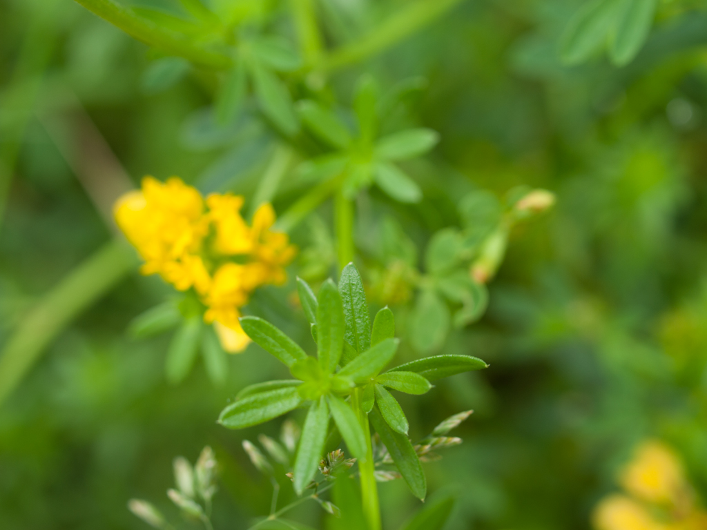 Edit: Wenn du ganz genau guckst, siehst du, dass die scharf abgebildeten Blätter anders aussehen, wie die auf dem ersten Bild, oder die im zweiten Bild oberhalb des Labkrauts. Im zweiten Bild gehören wiederum die unscharfen Blätter oberhalb zur Pflanze Sie stehen nicht im Quirl sondern nur zu dreien zusammen...