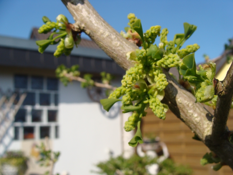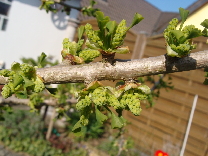Habe bei meinen Eltern heute eine Zufallsentdeckung am Ginkgo gemacht er bildet Blüte wo mit ich nicht gerechnet habe .