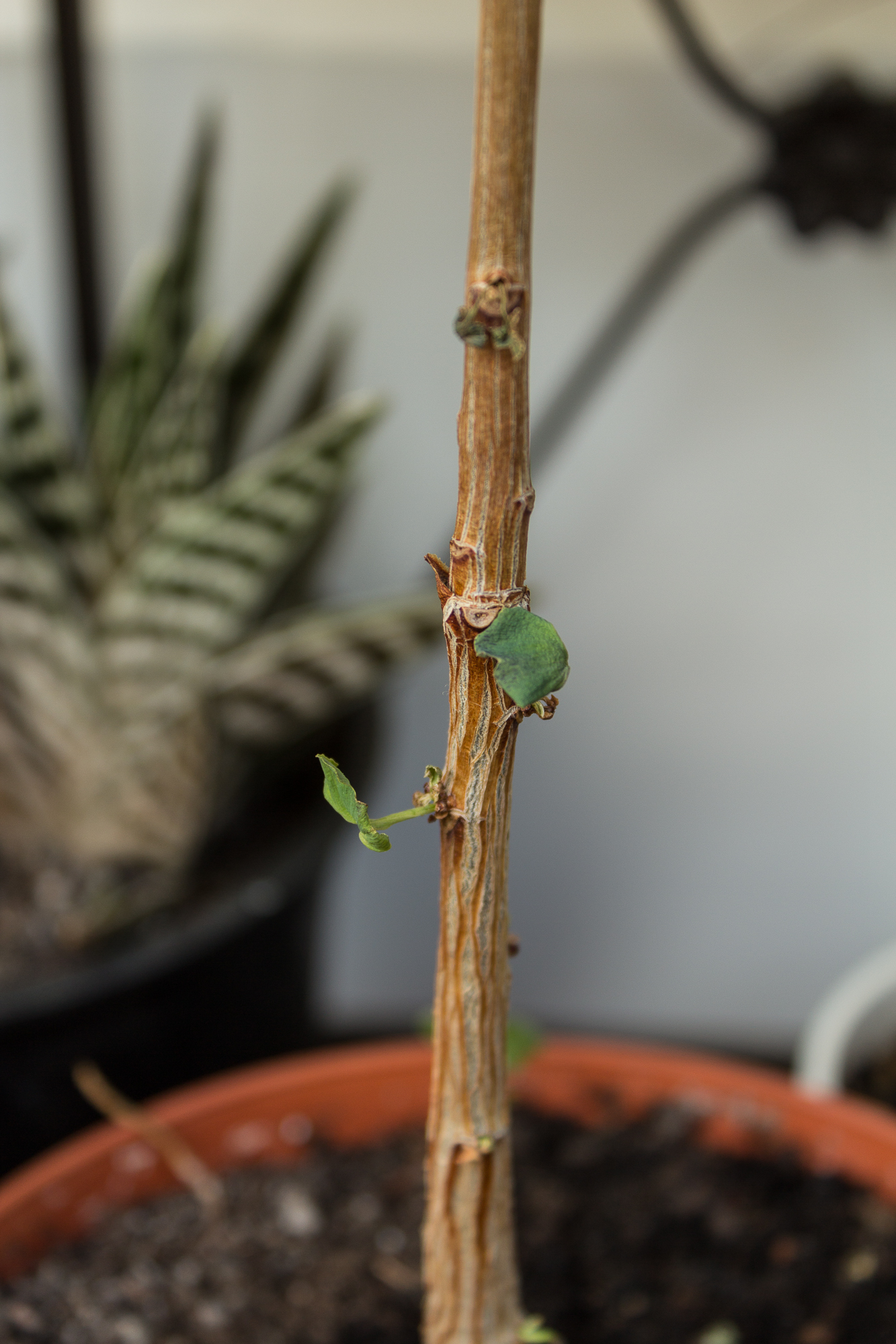 Dann aber tat sich längere Zeit nichts und jetzt ist die Knospe sowie die vier / fünf darunterliegenden Knospen vertrocknet und die wenigen winzigen Blätter, die es bis ans Tageslicht geschafft haben, sehen auch nicht gut aus und drohen auch kaputtzugehen.