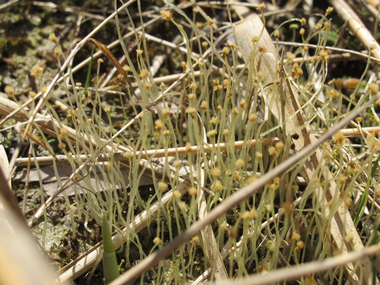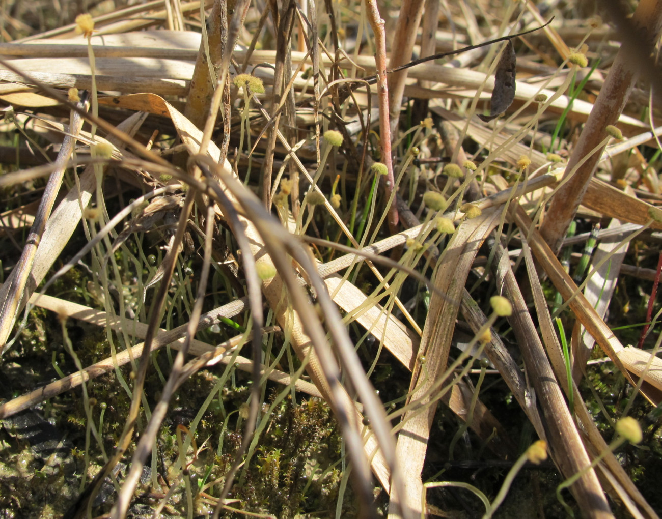 Ich habe heute etwas entdeckt, was ich so absolut nicht irgendwo einordnen kann. Die Stängel sind fast glasartig durchsichtig, oben hat es einen kleinen Knubbel dran (fast wie ein Stecknadelkopf). Erst ist er grün, später platzt er in 4 Stücke auf, wie eine Art Kapsel. Innendrin hat es so braune "Fusseln", dadurch dass sie so klein sind, weiss ich aber nicht, ob es Unmengen von Sporen sind oder ganz feine Samen.